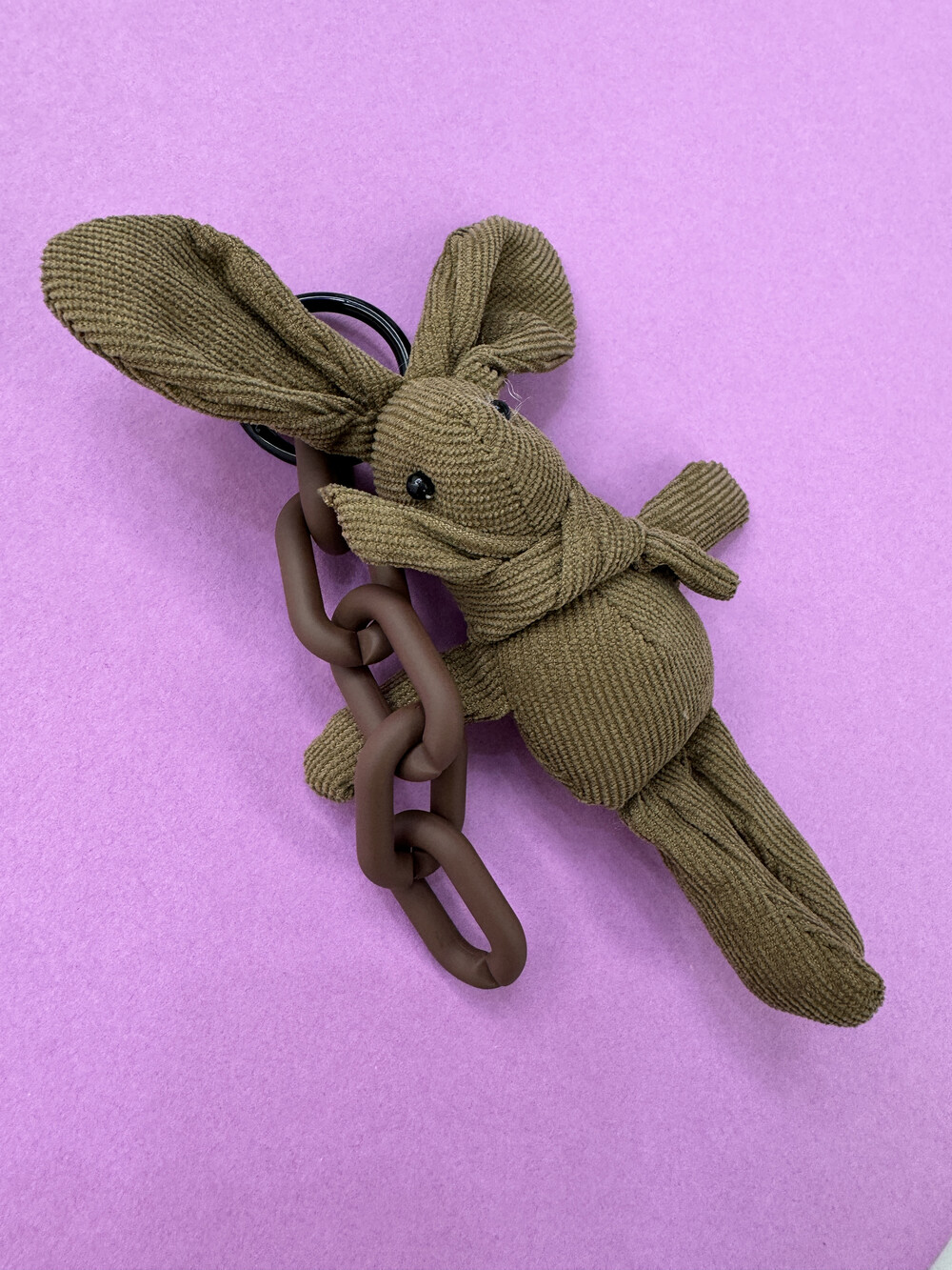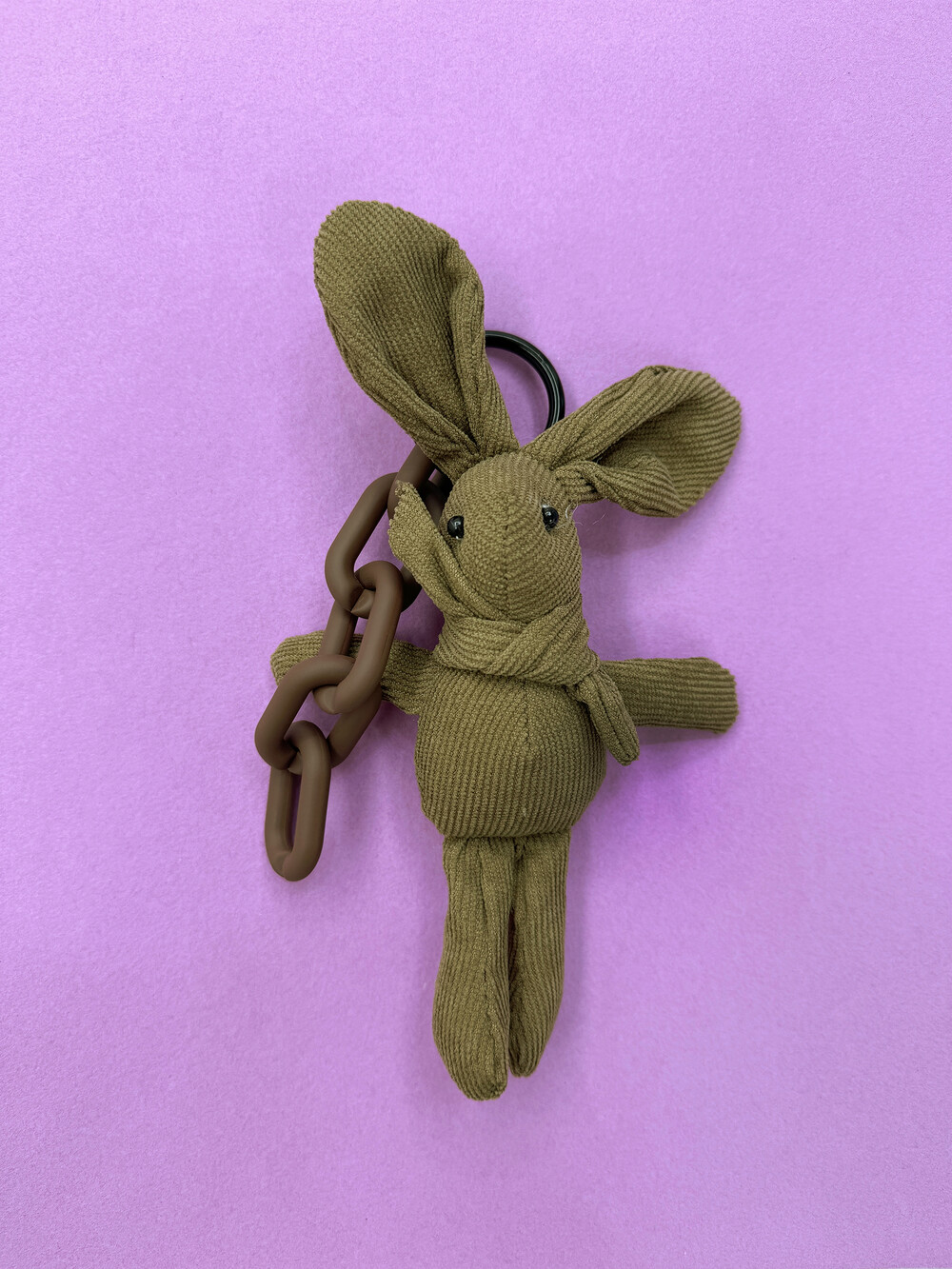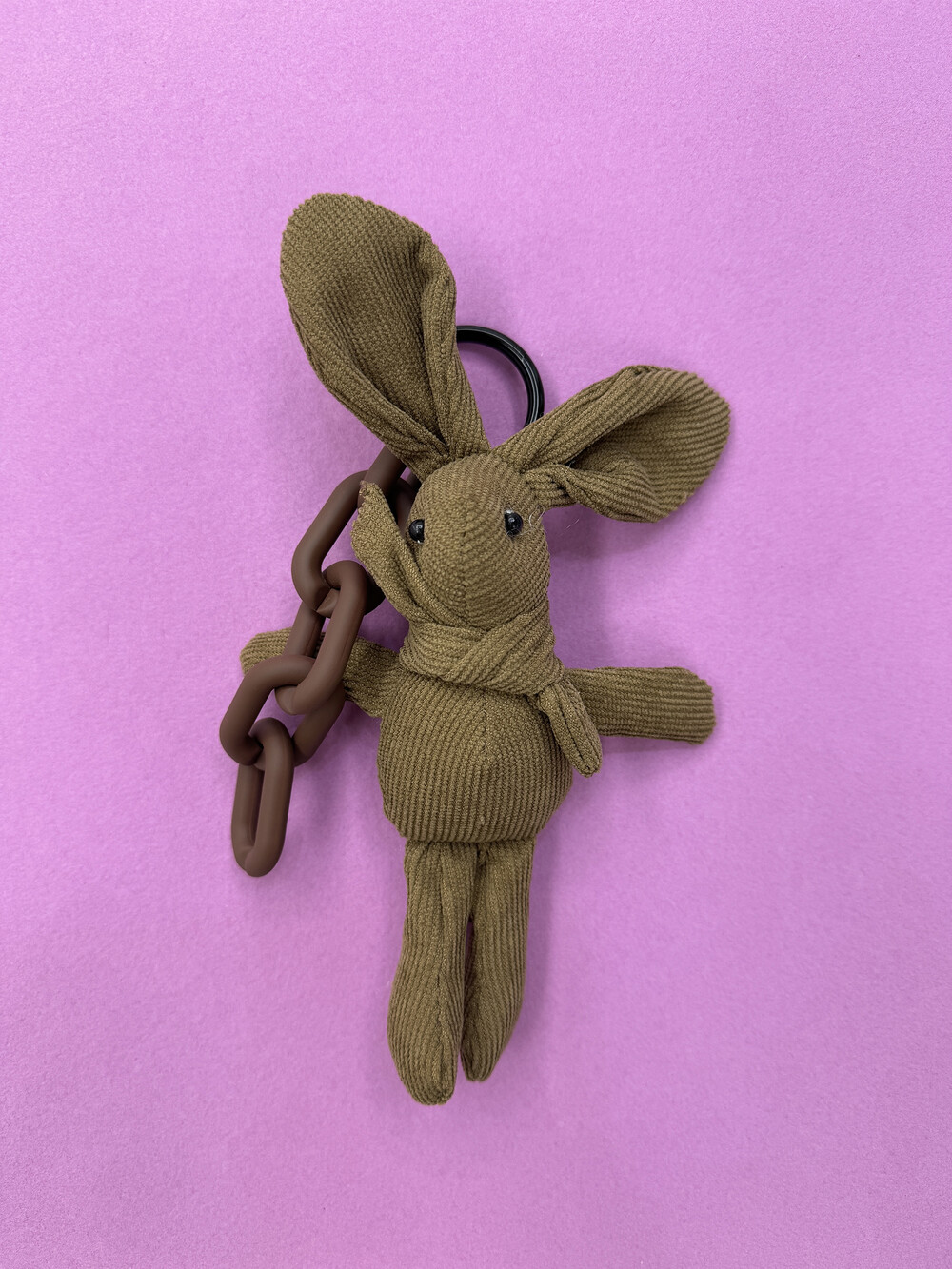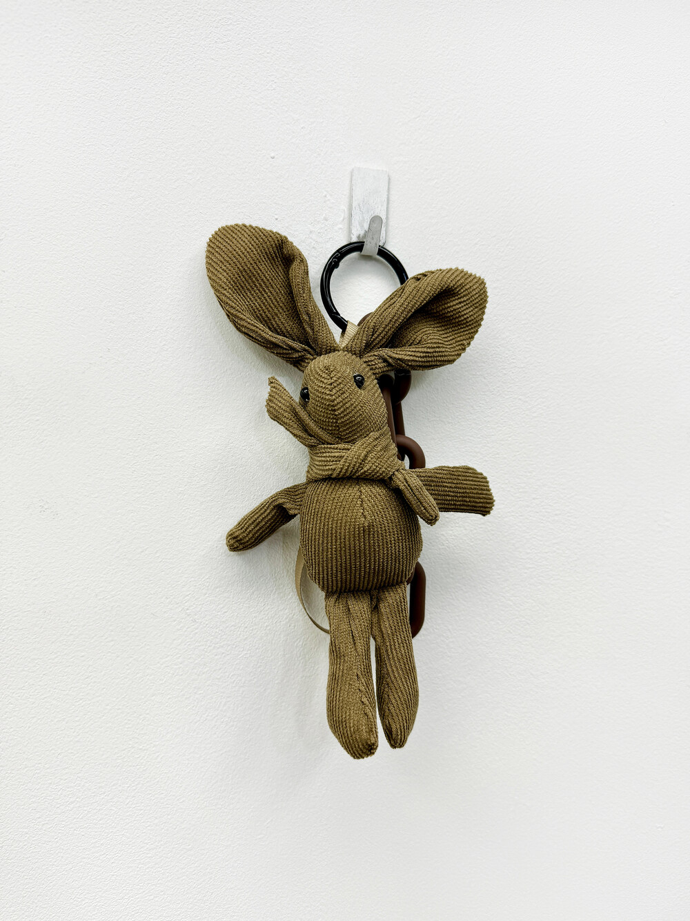 우울한 표정의 코듀로이 재질 토끼 키링입니다.