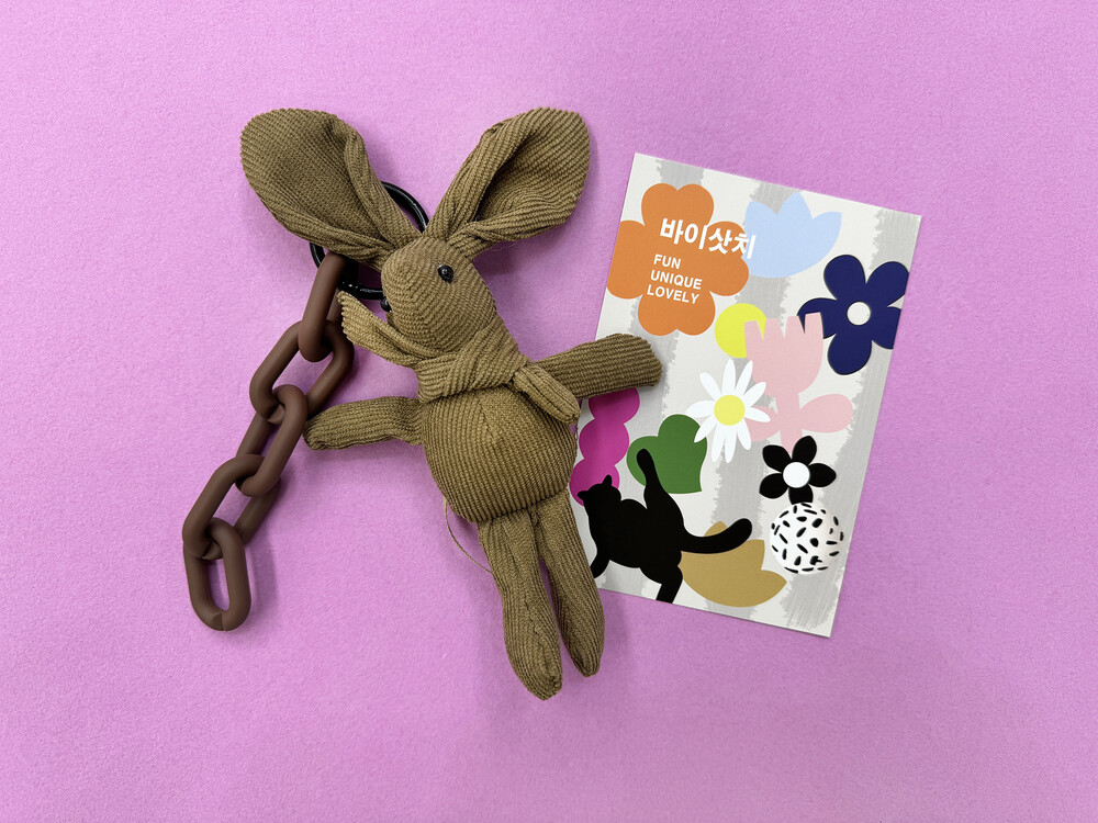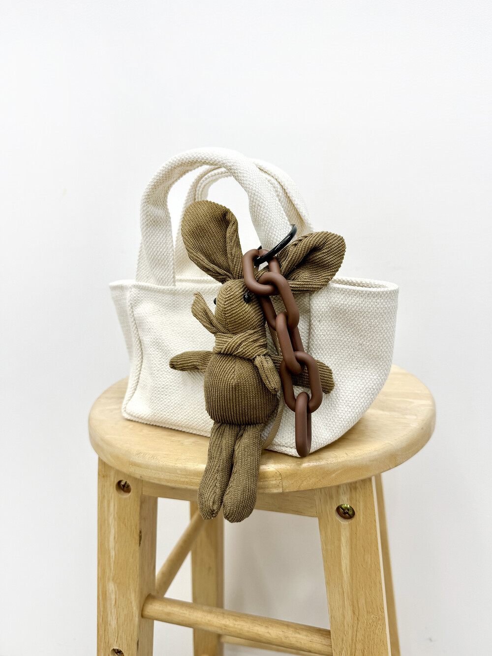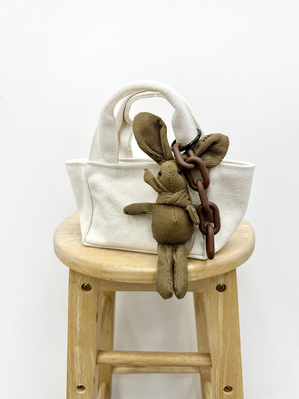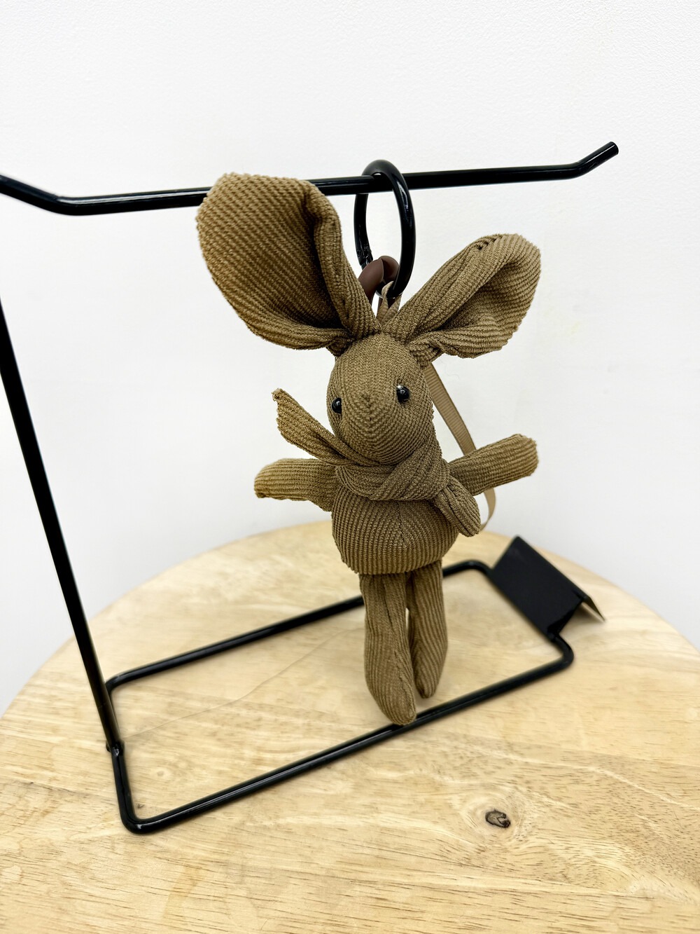 우울한 표정의 코듀로이 재질 토끼 키링입니다.