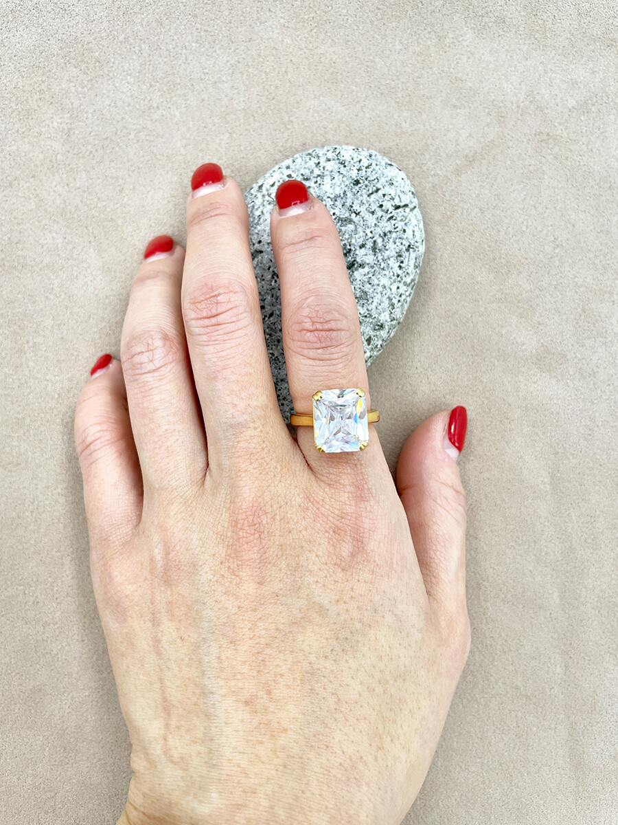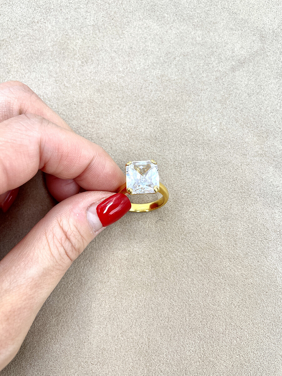볼드한 사각형의 큐빅장식이 포인트인 검지 링 입니다.