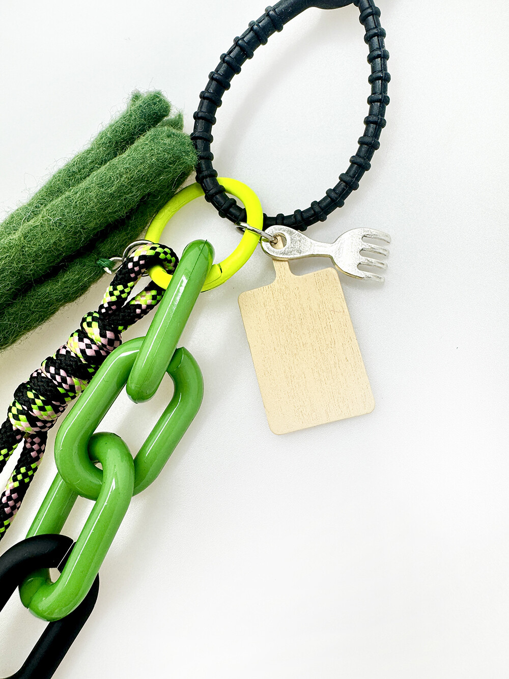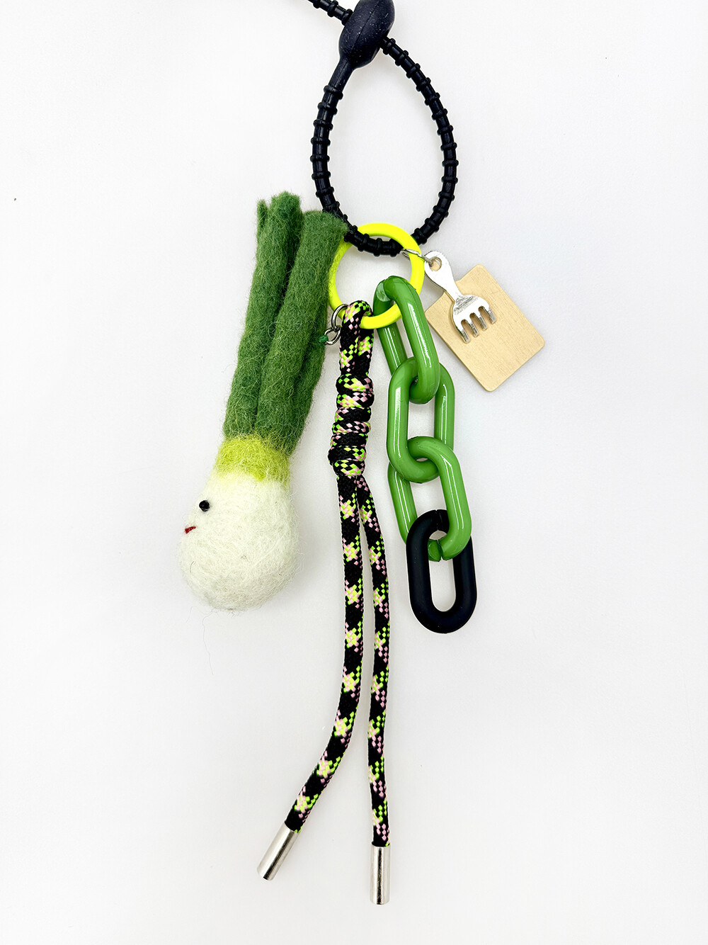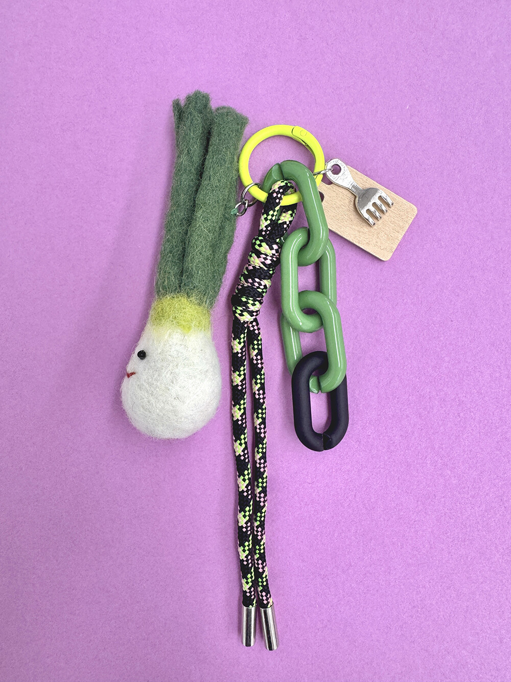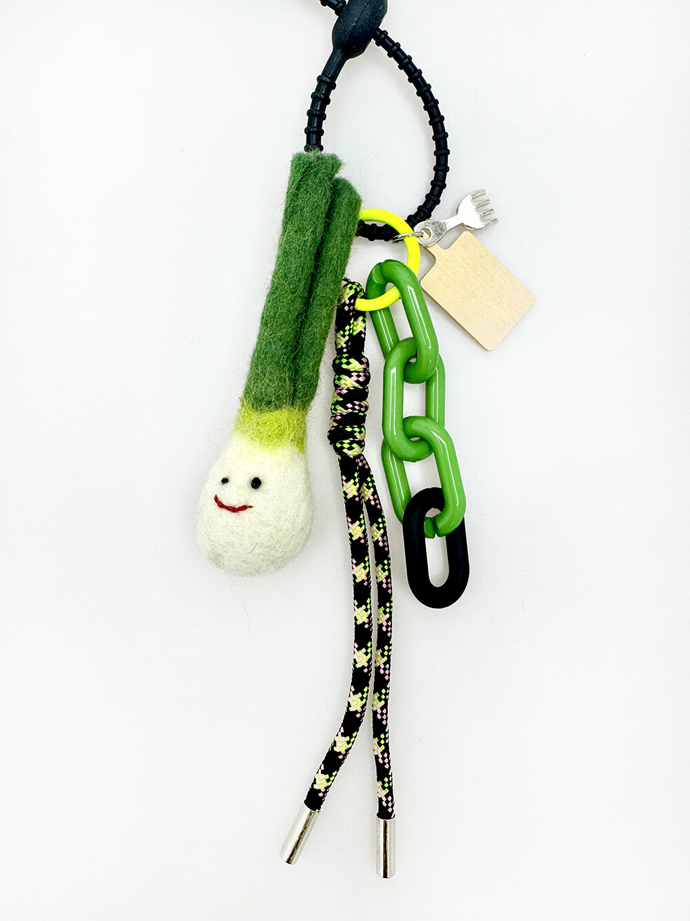대파 모티브가 유니크하구요, 멀티컬러 매듭 과 우드 컷팅보드 , 포크 참들이