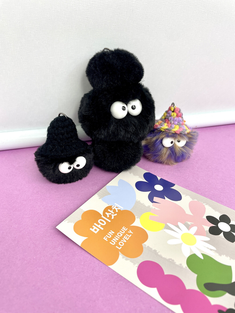 몽글몽글 폭신폭신한 블랙 3단 먼지볼 키링입니다.