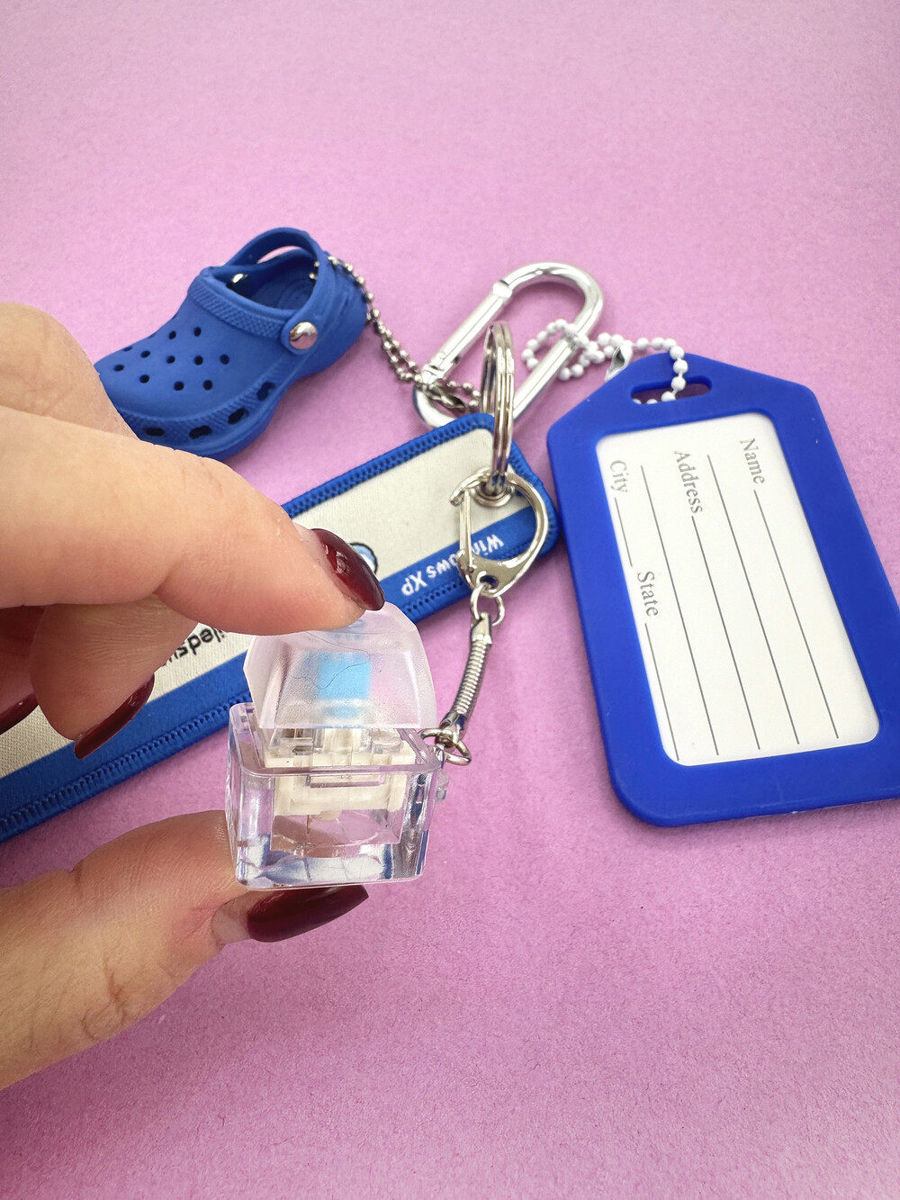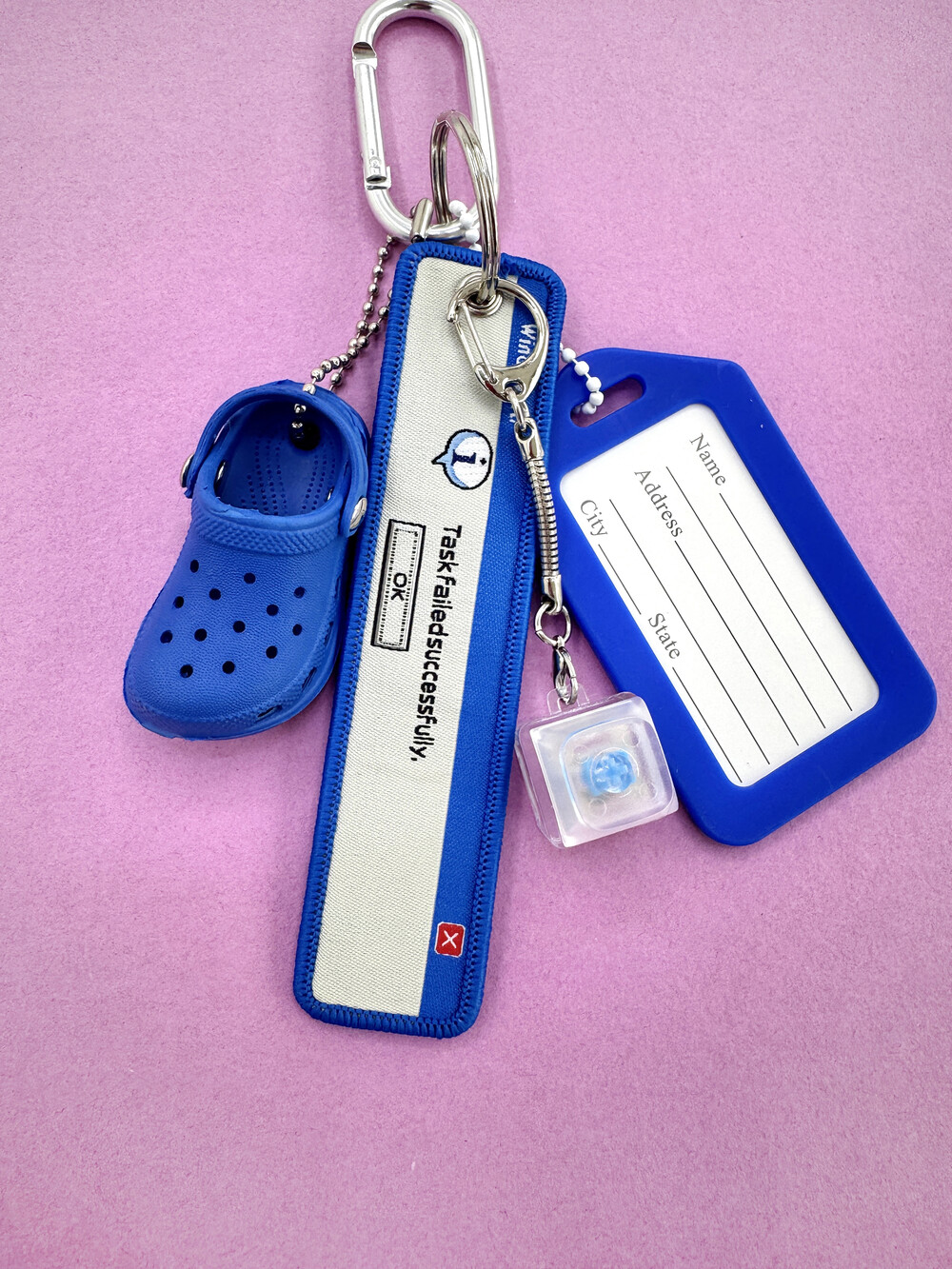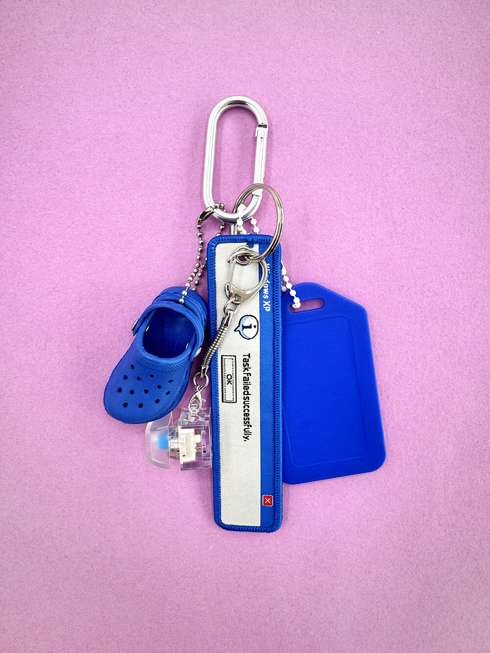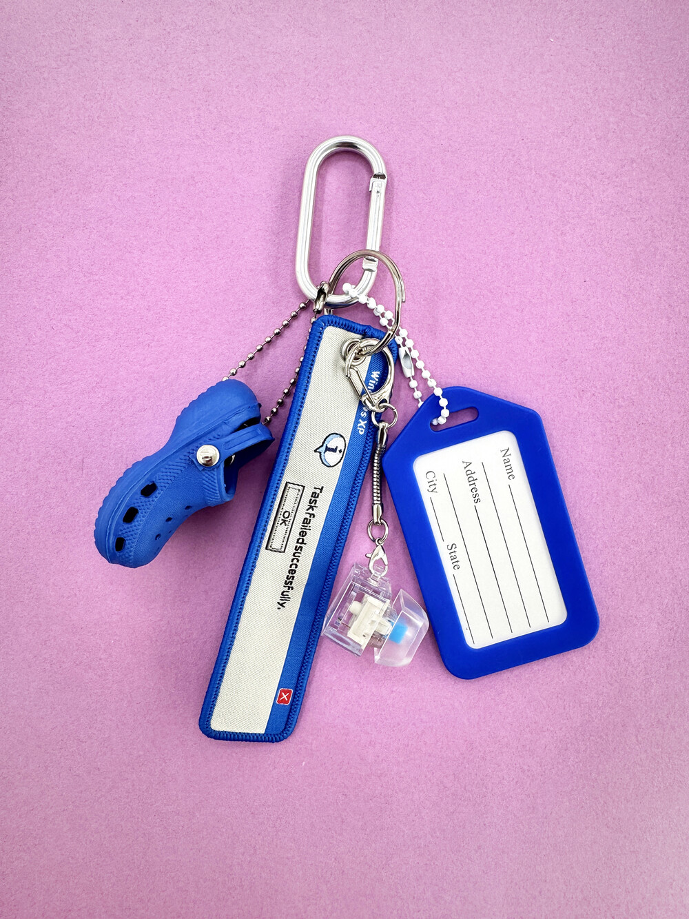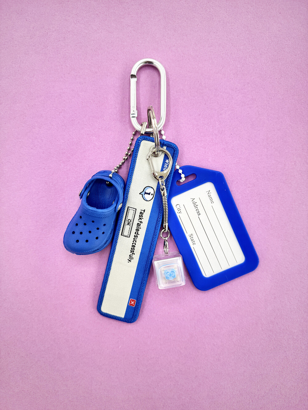 얼럿팝업 참, 키캡, 파란색 크록스, 비비드한 네임택까지.