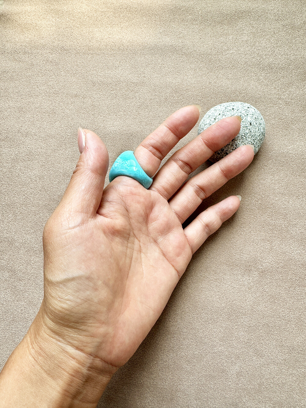 썸머룩에 포인트로 착용하기 좋은 볼드링 입니다.