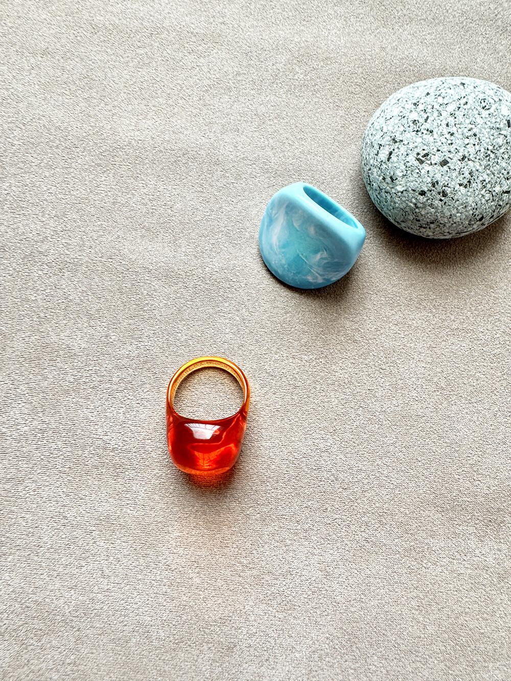 영롱한 오렌지 톤 과 마블패턴이 들어간 청량한 블루 컬러 에요.