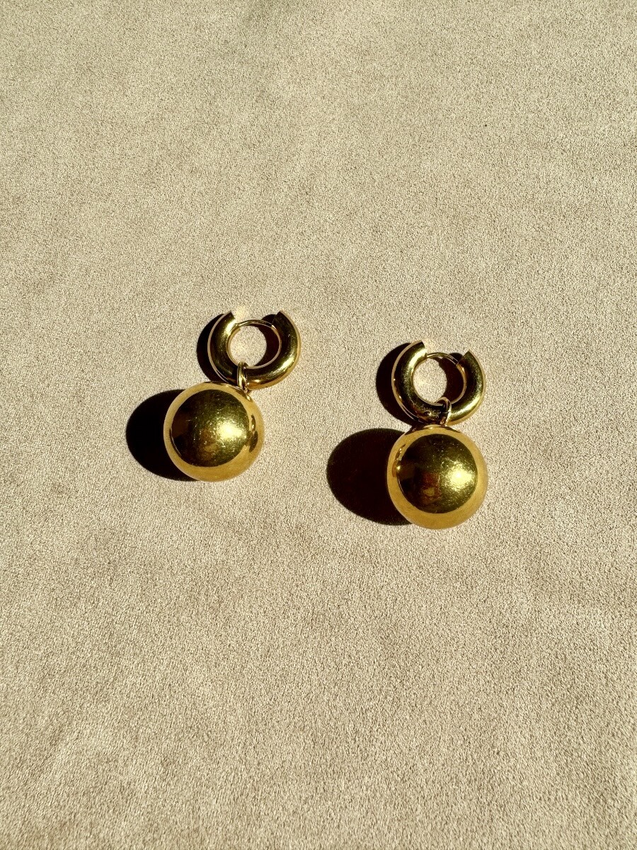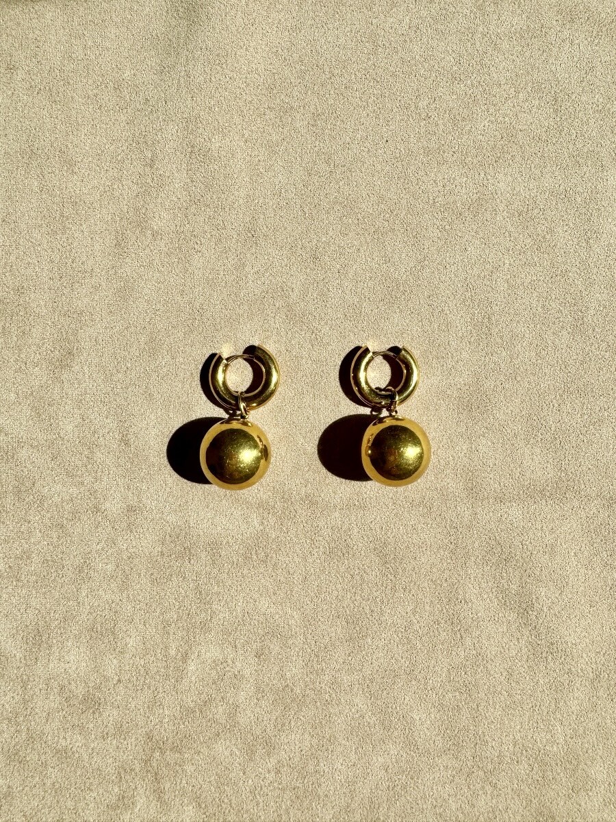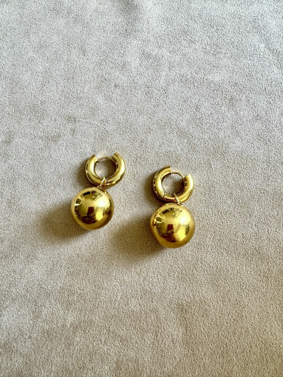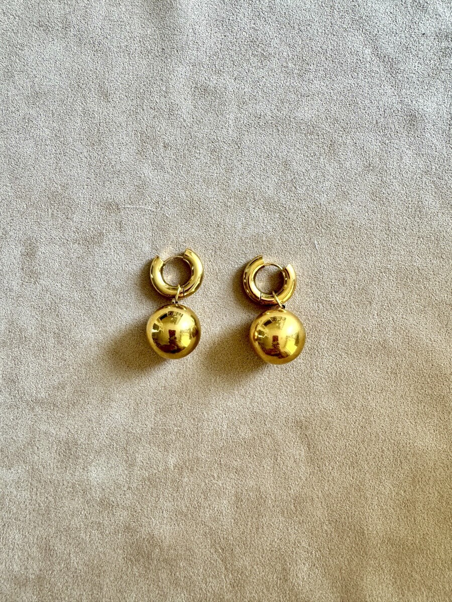 볼드한 사이즈의 골드볼이 드롭된 후프 이어링