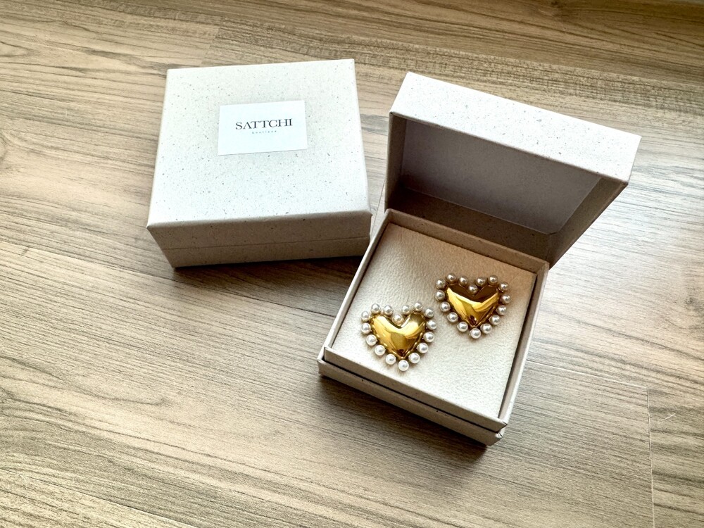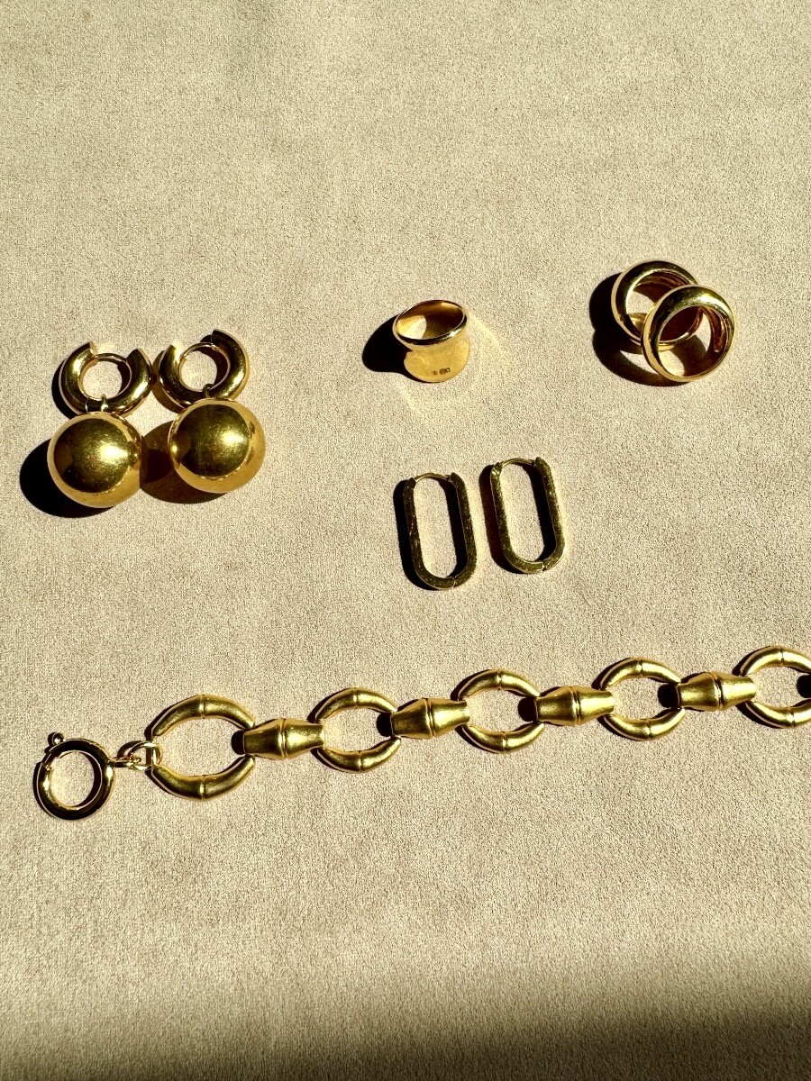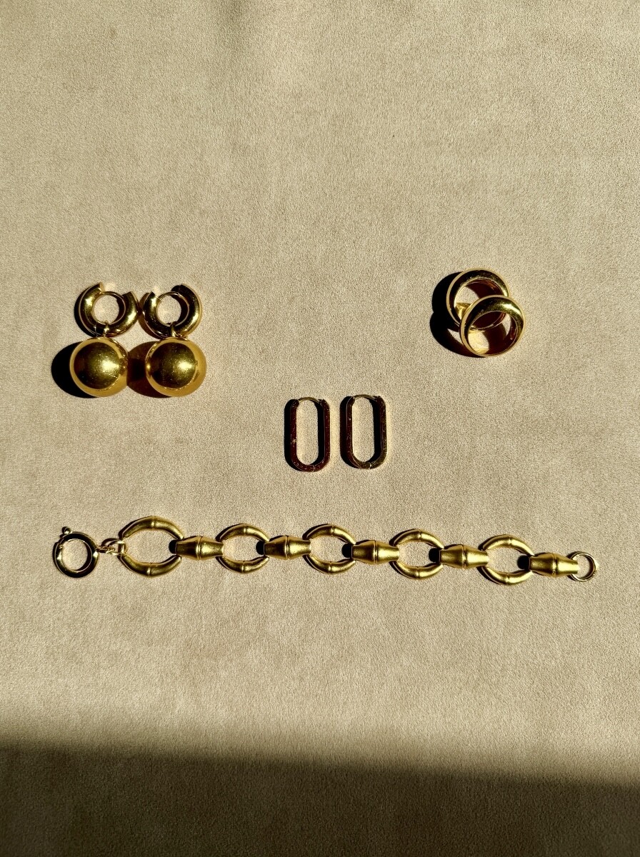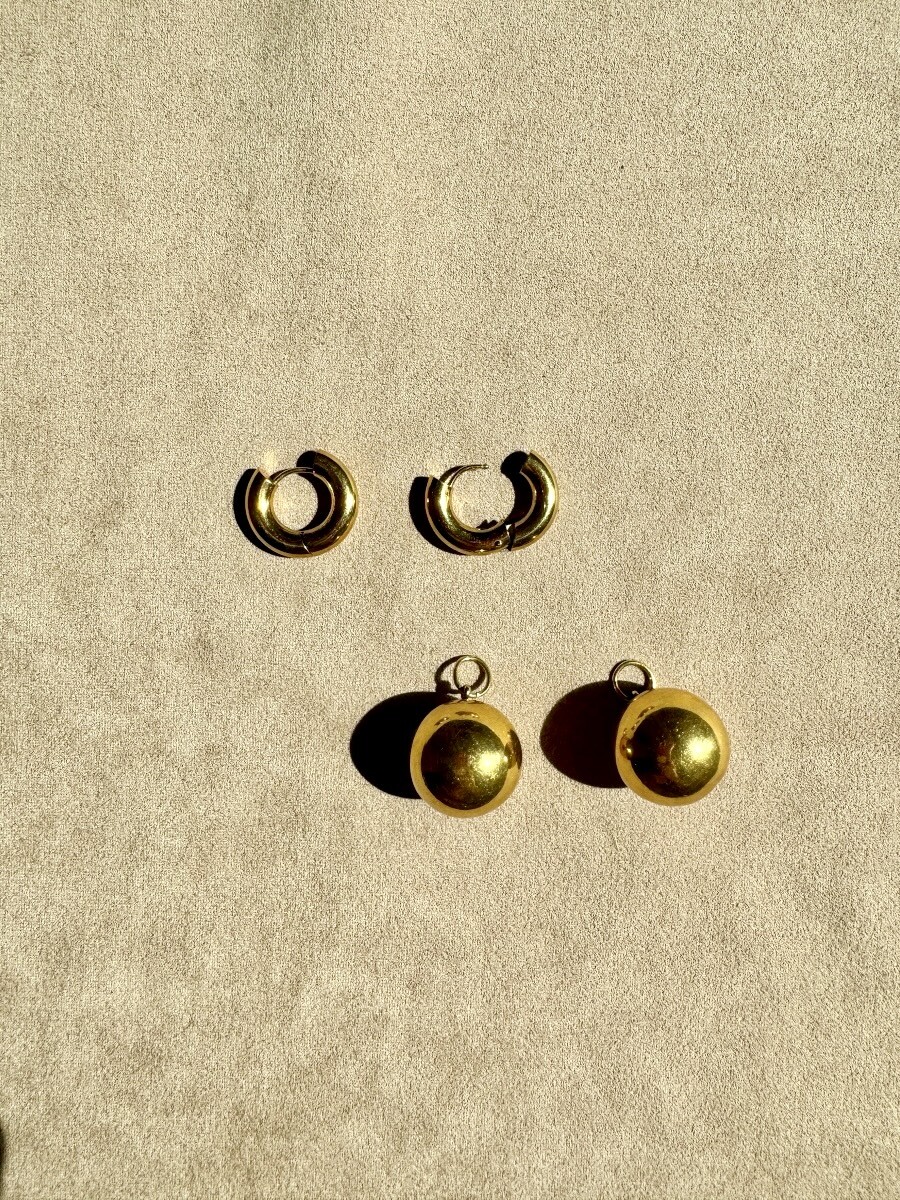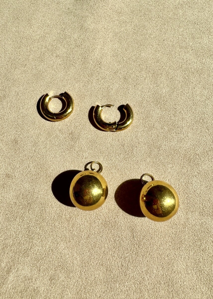 볼드한 사이즈의 골드볼이 드롭된 후프 이어링