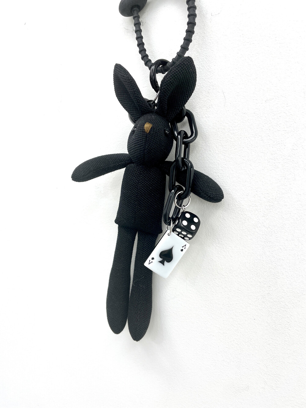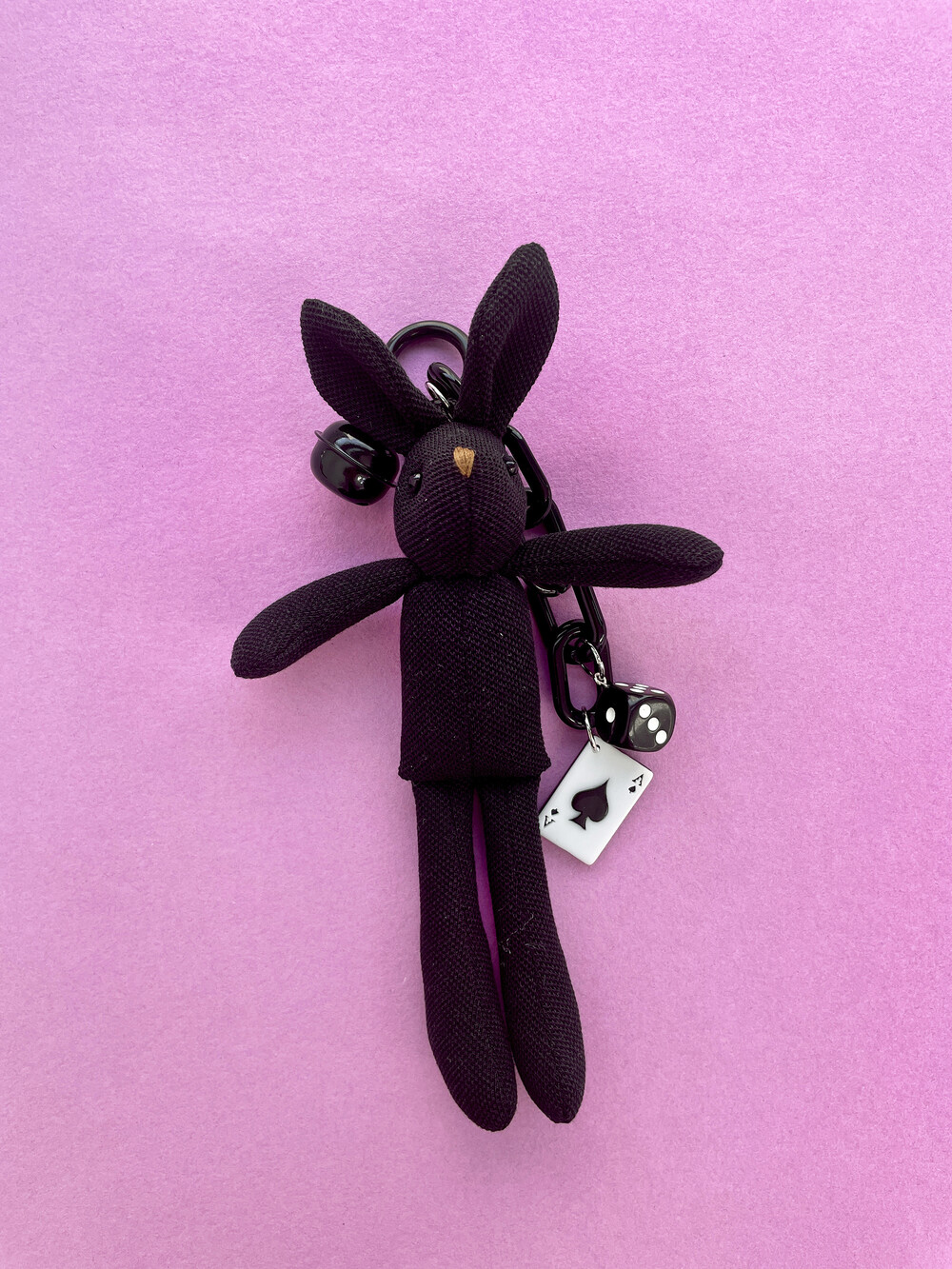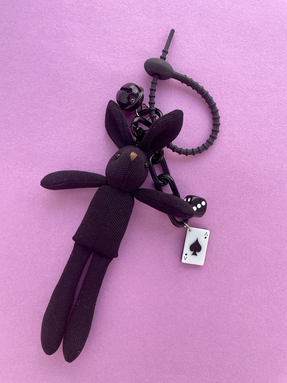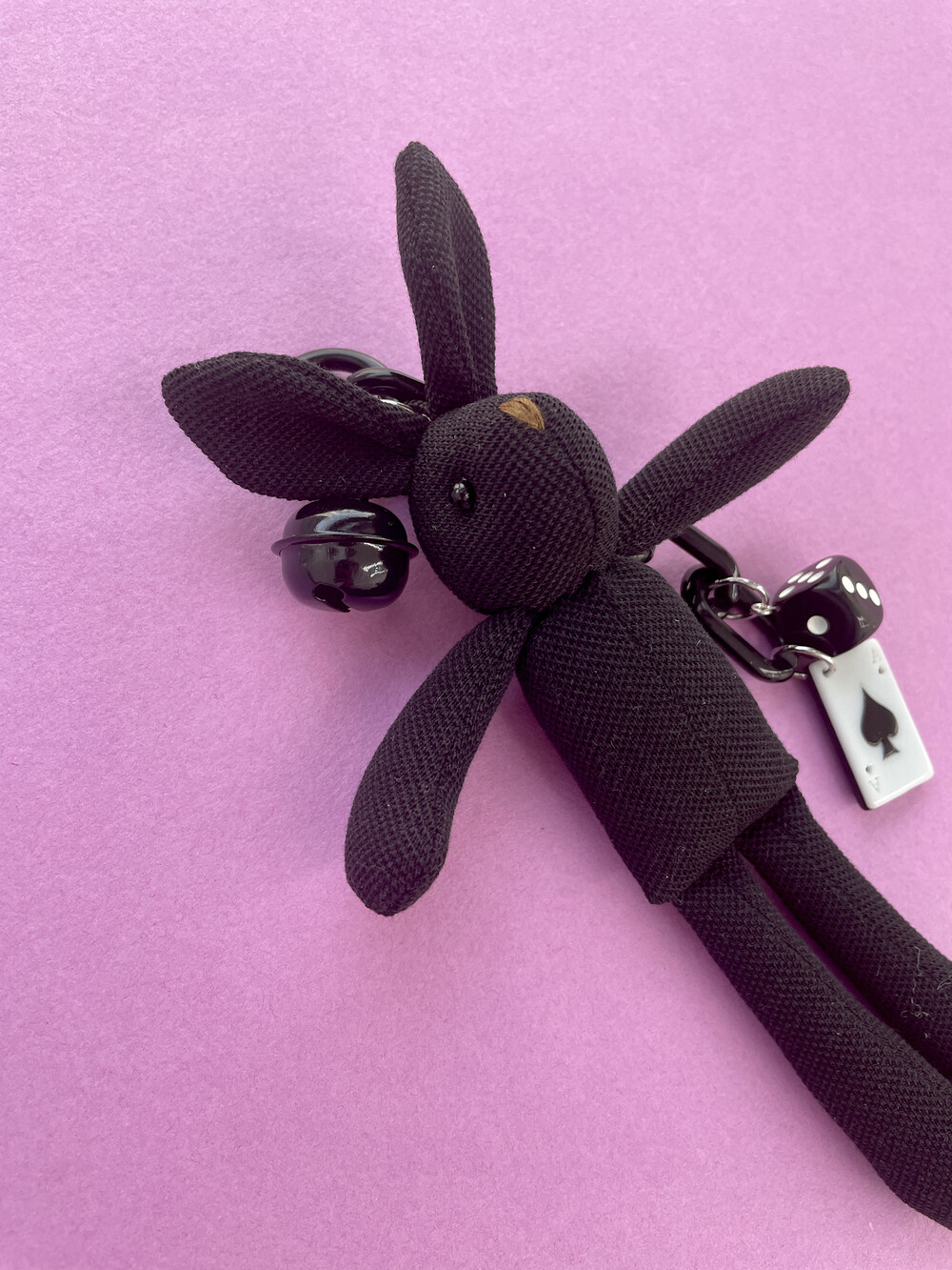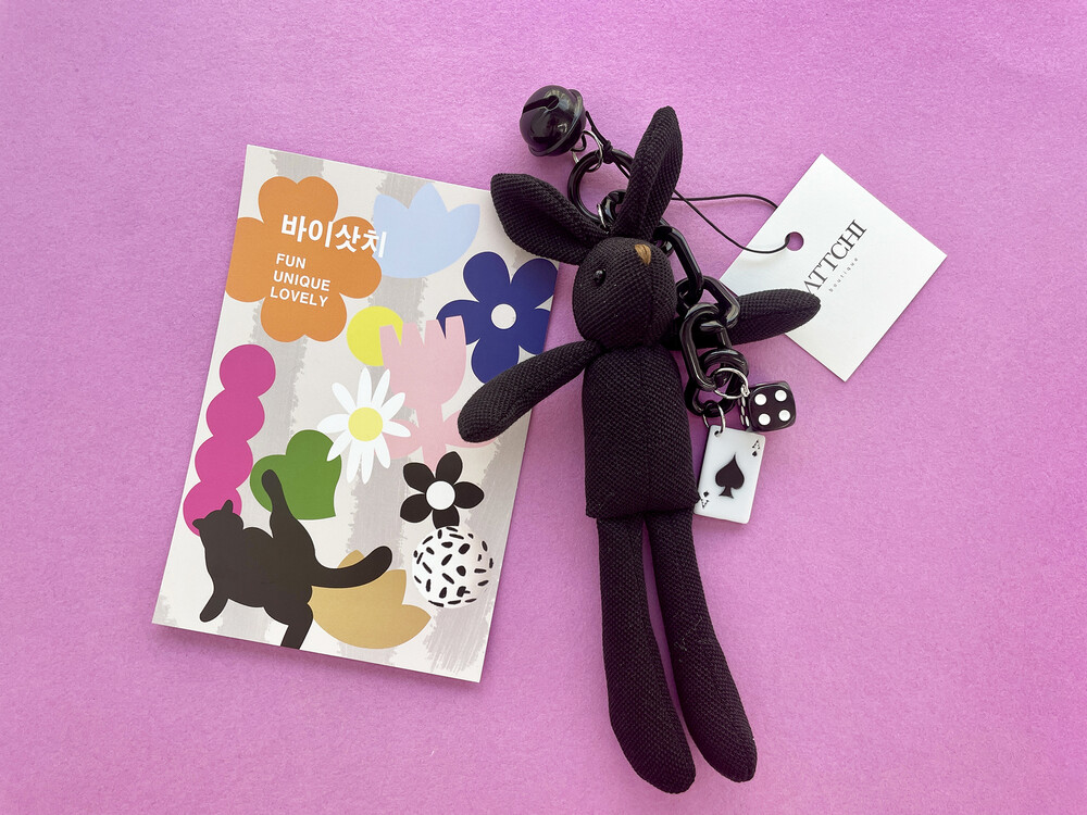 길쭉한 블랙 토끼 인형 백참 입니다.