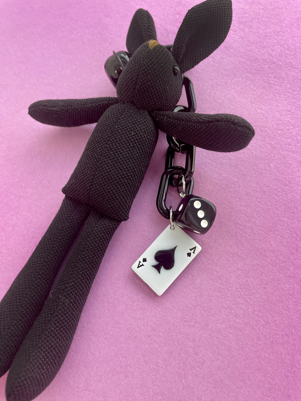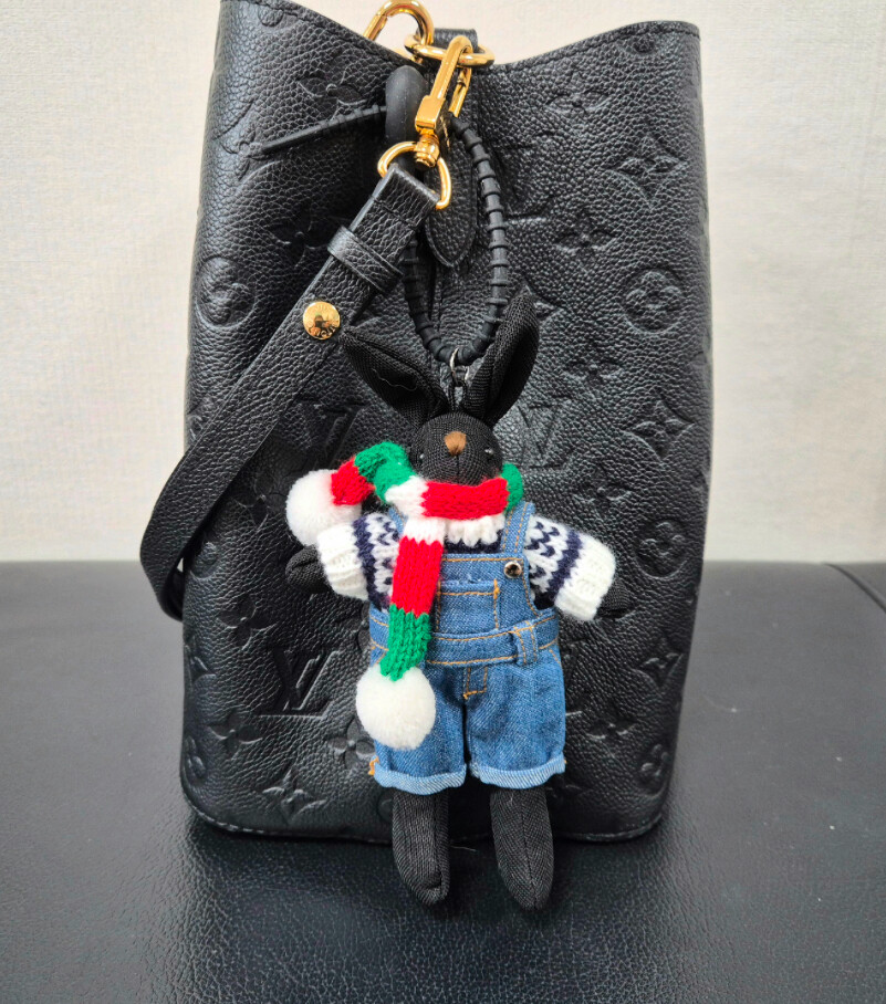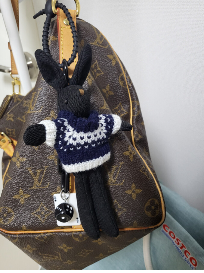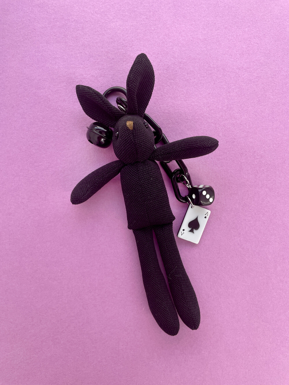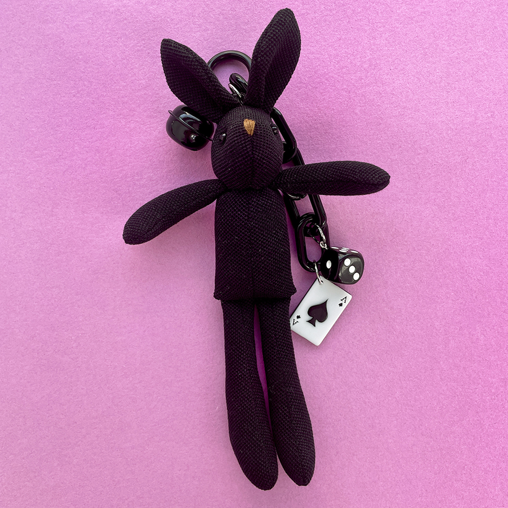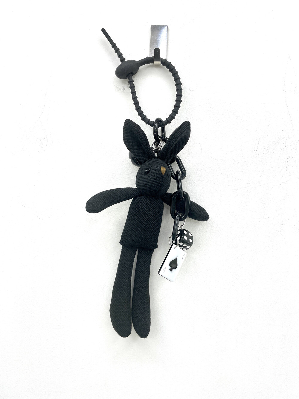 길쭉한 블랙 토끼 인형 백참 입니다.
