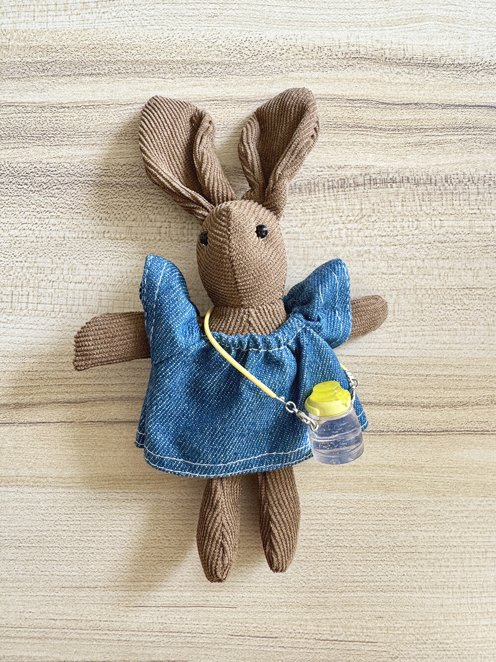 코듀로이 재질의 브라운 토끼 백참입니다.