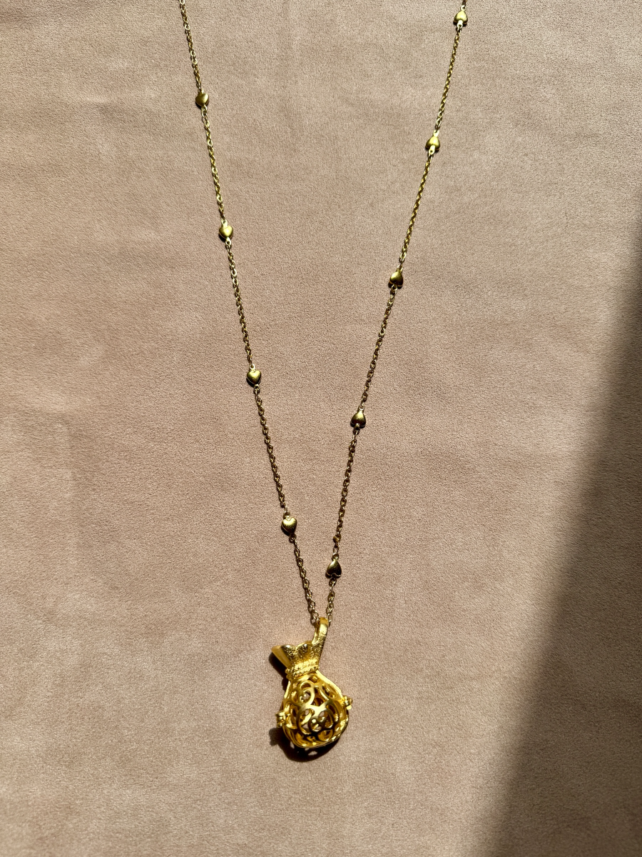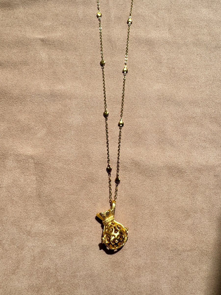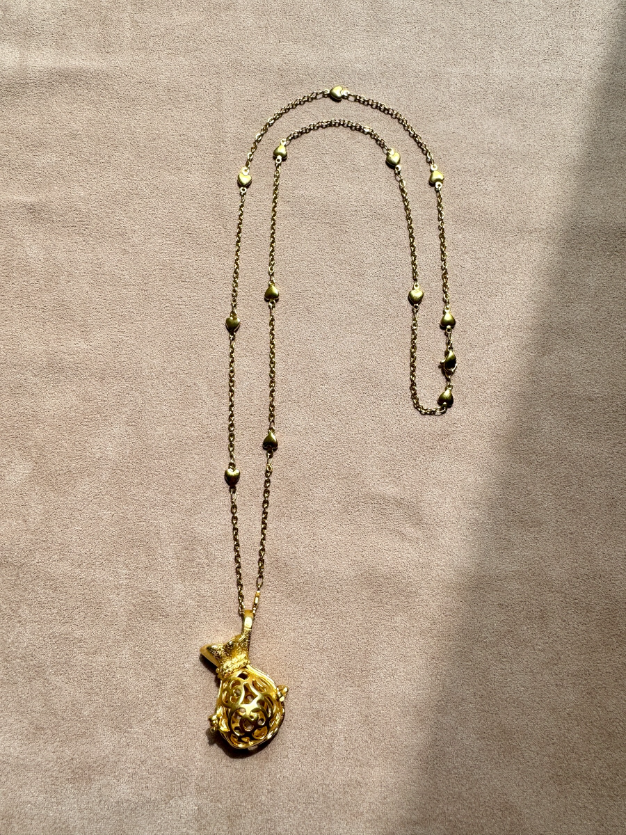 롱 체인에 딥골드컬러가 보헤미안룩에 어울리는