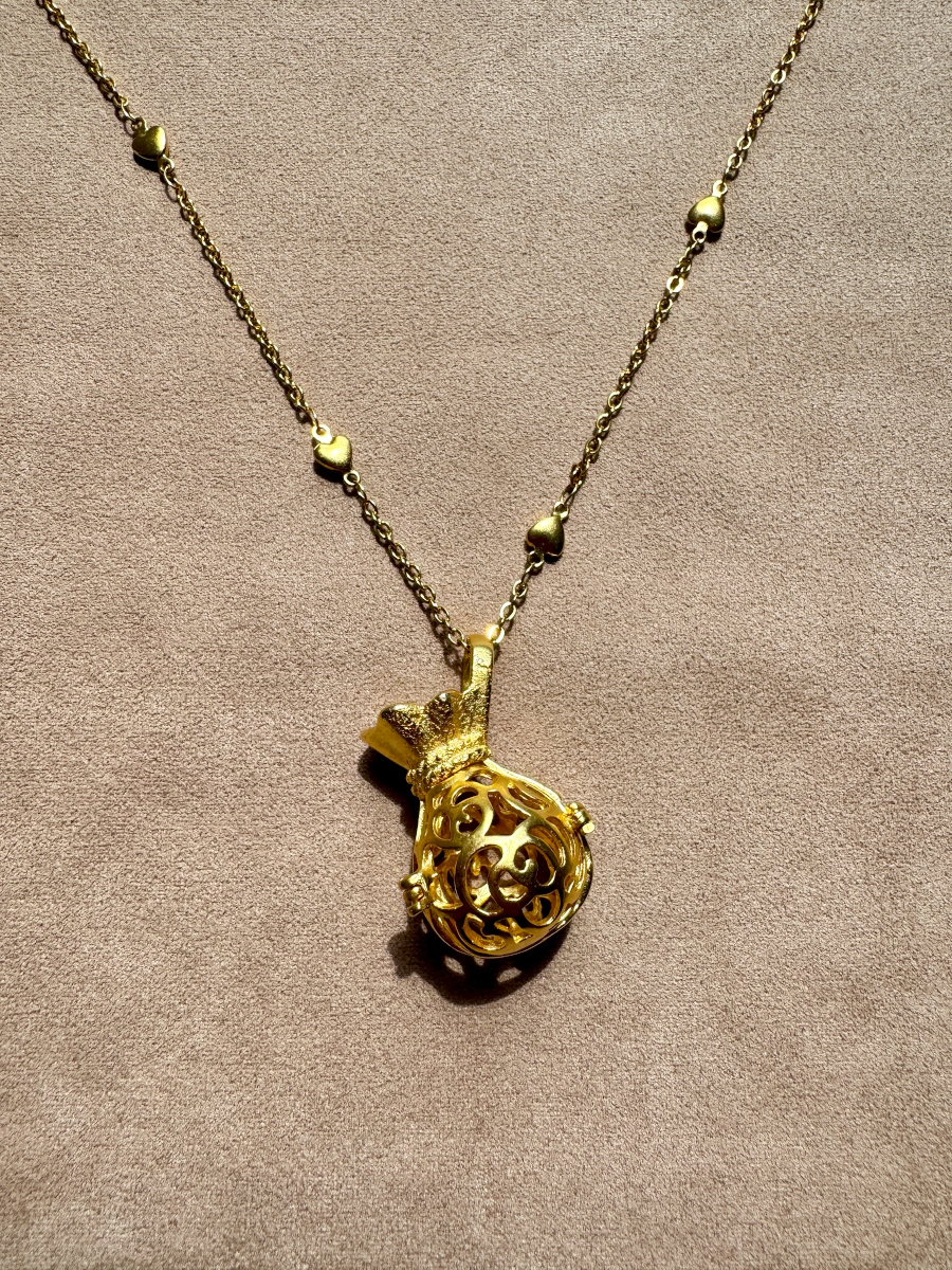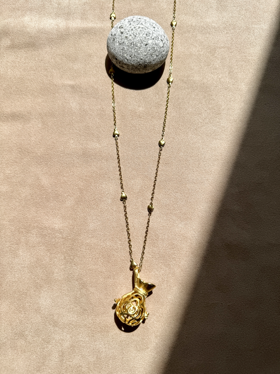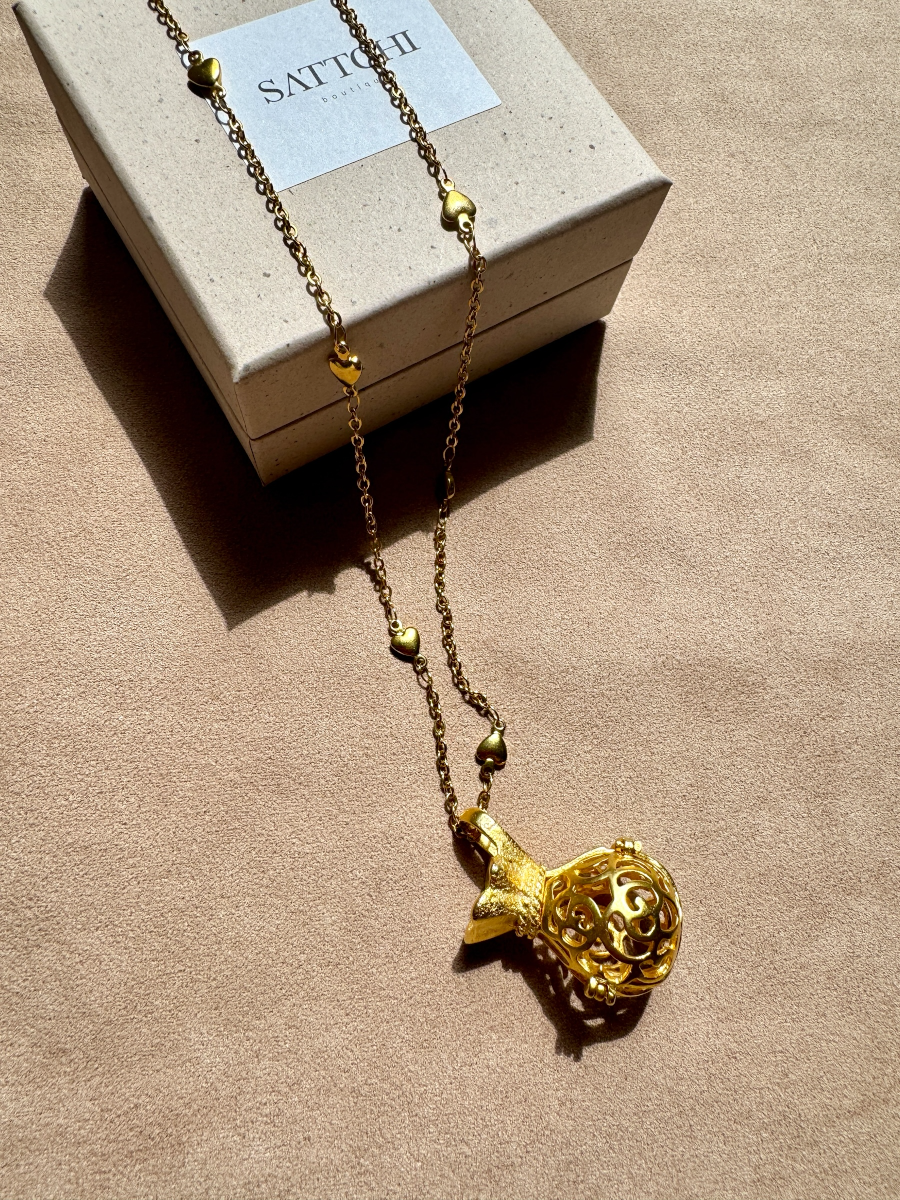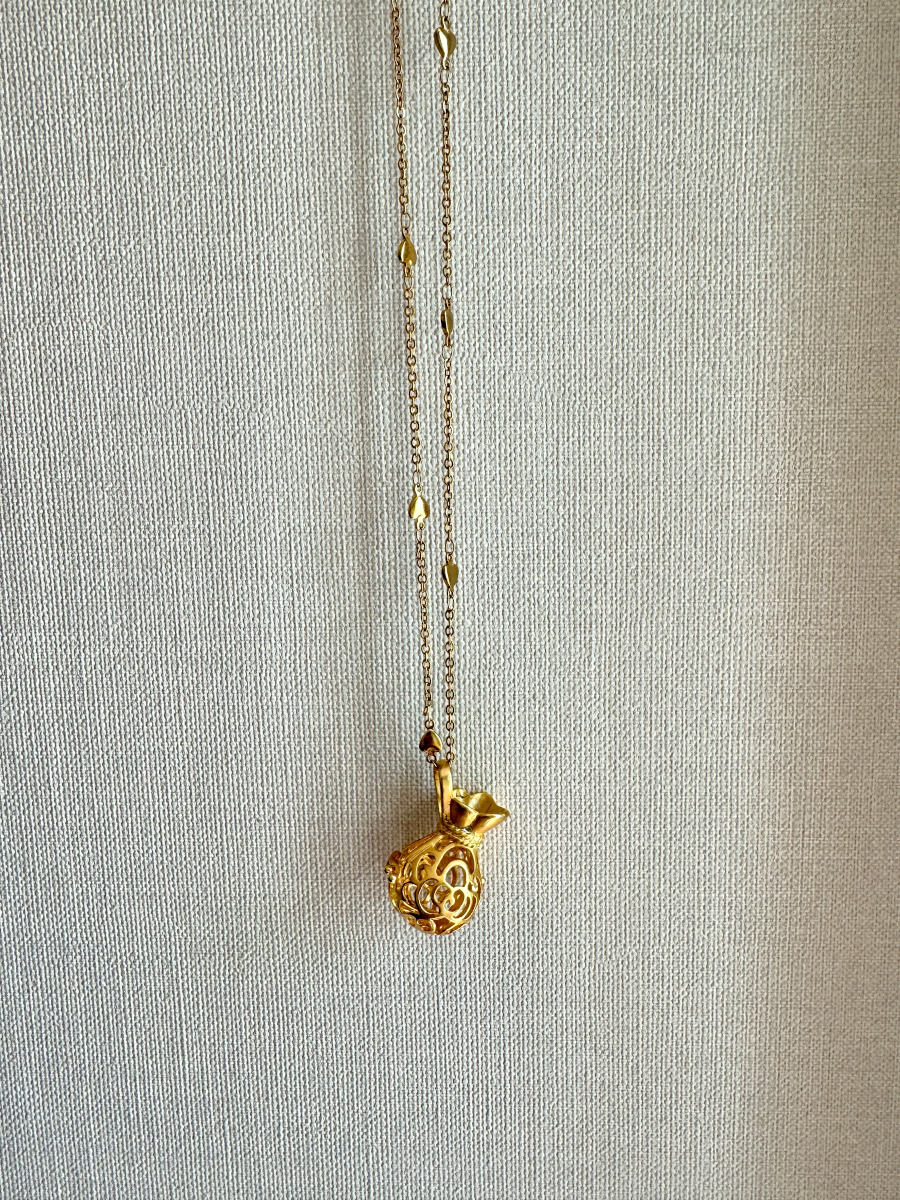 롱 체인에 딥골드컬러가 보헤미안룩에 어울리는