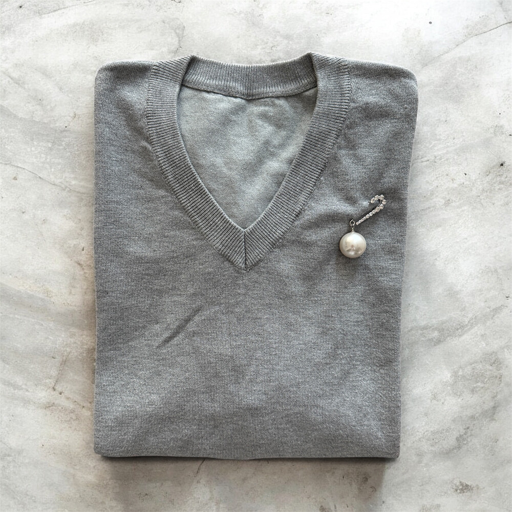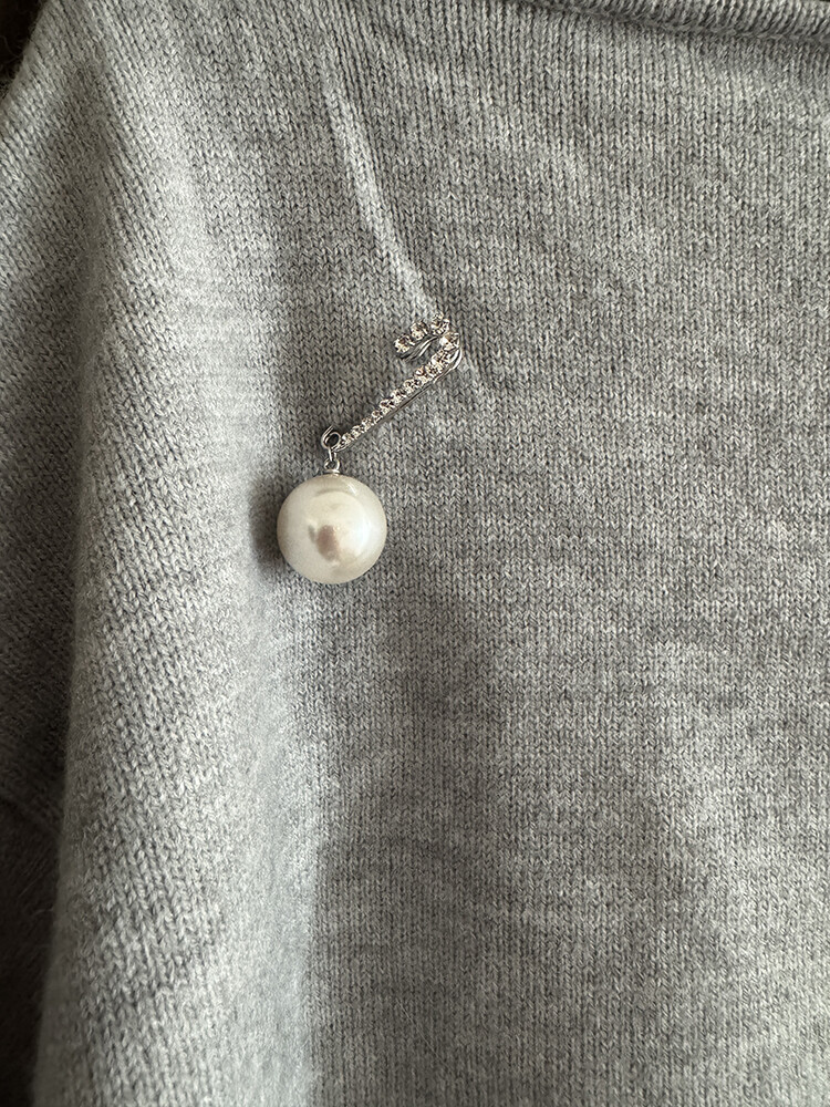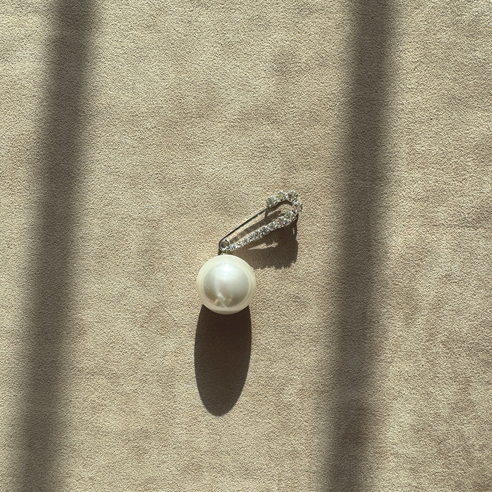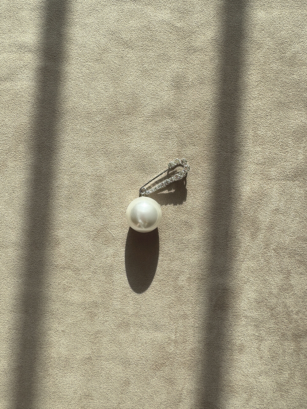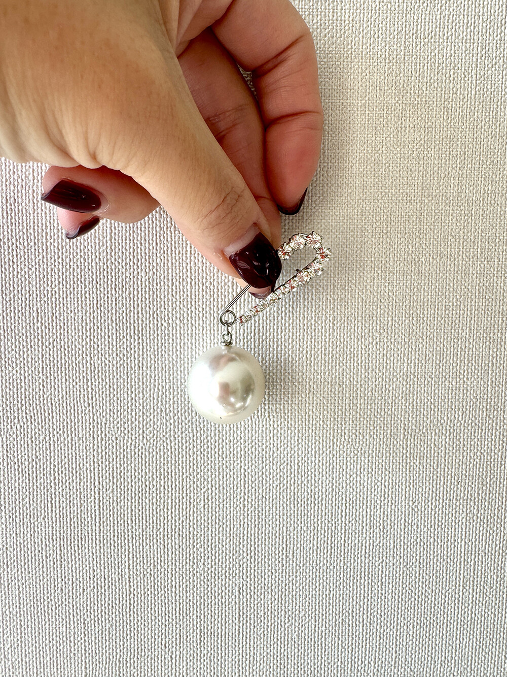 볼드한 사이즈의 고리진주가 달린 미니 사이즈 큐빅 브로치 입니다.
