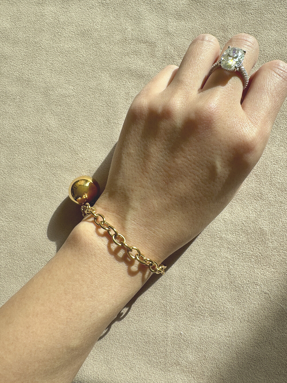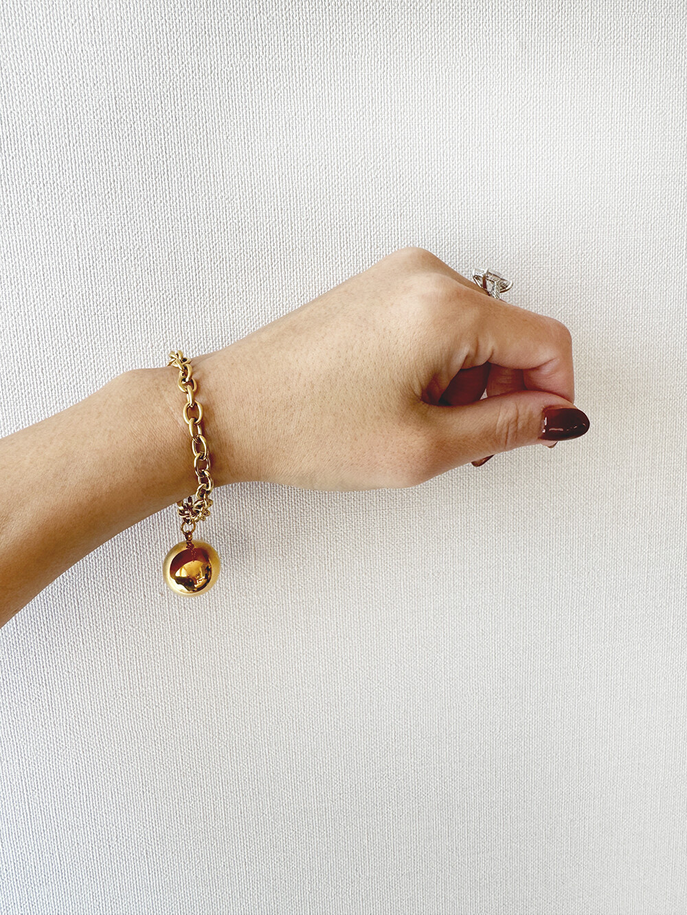 볼드한 볼드롭장식이 달린 체인 브레이슬릿 입니다.