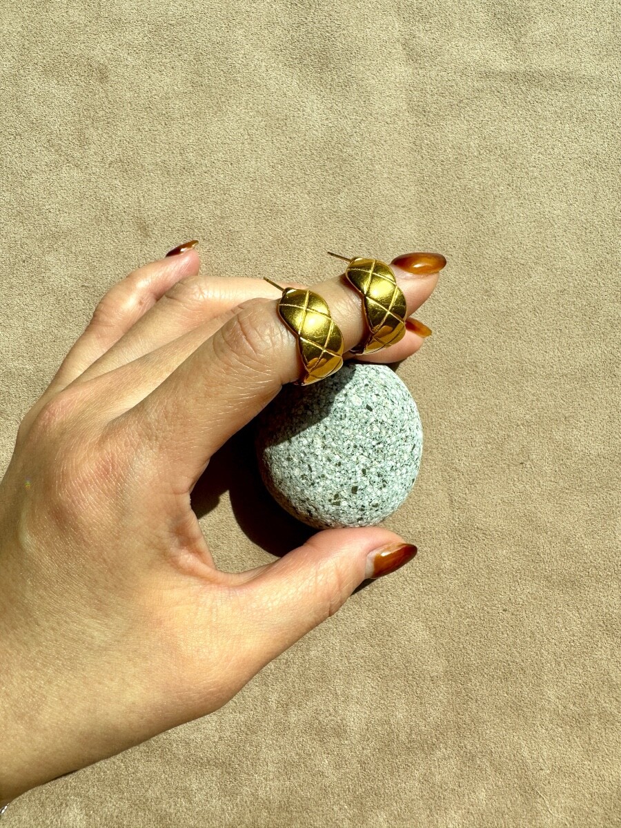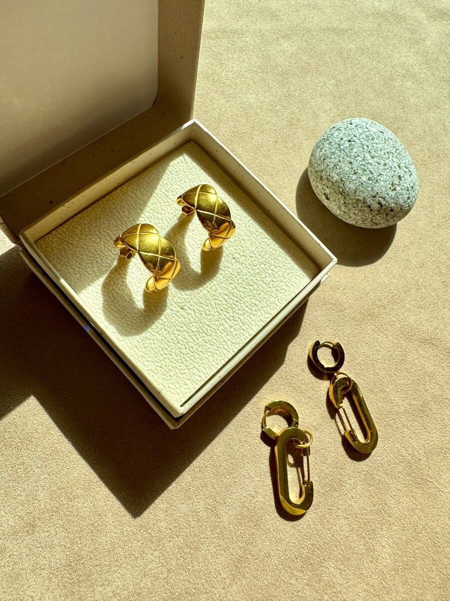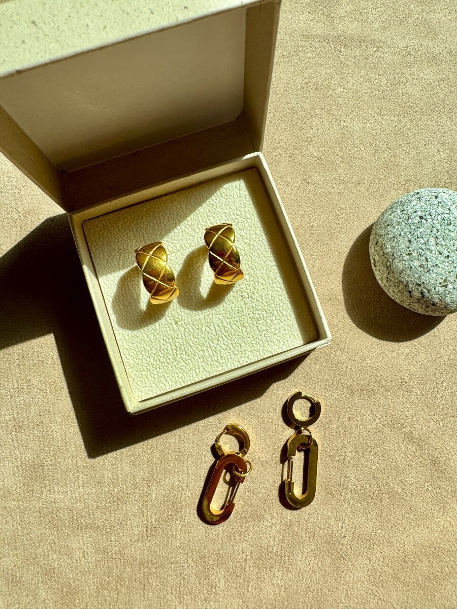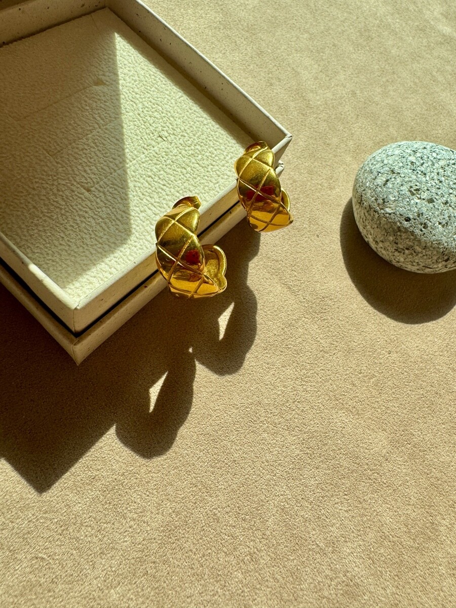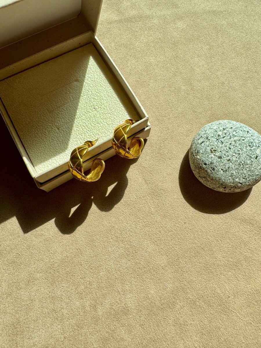 바스킷패턴의 볼드한쉐입의 후프타입 이어링