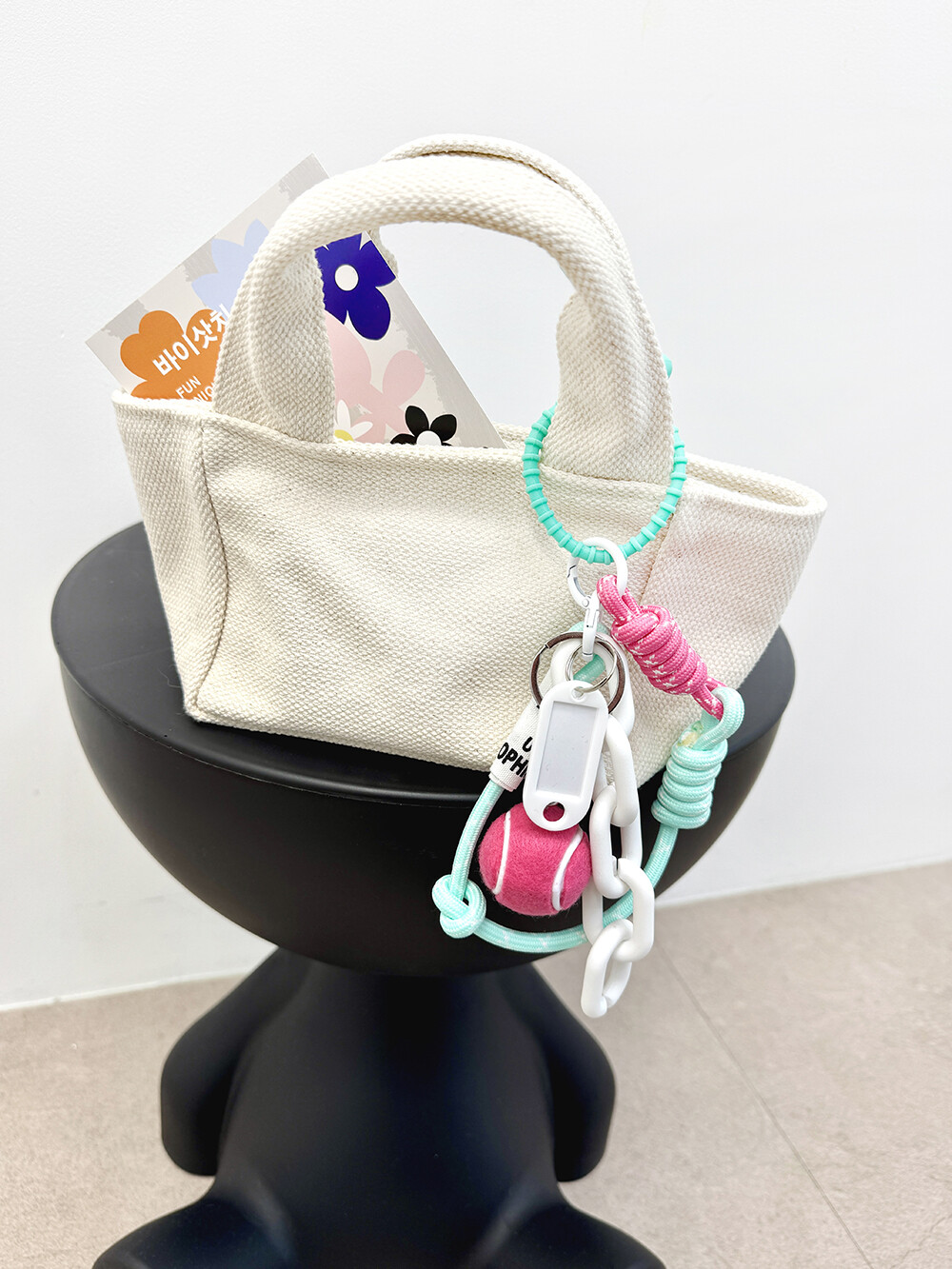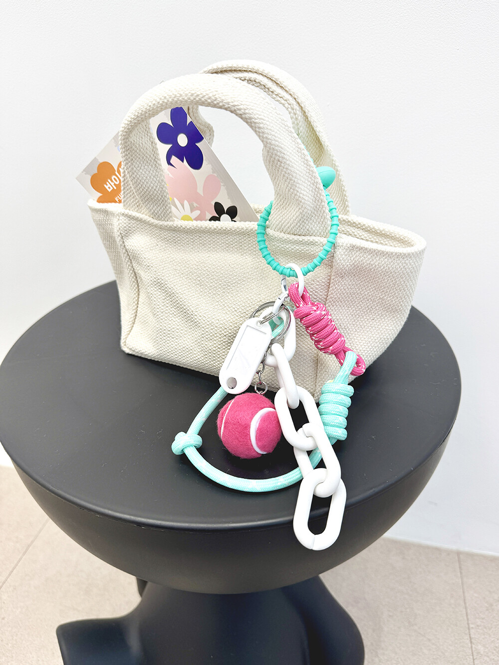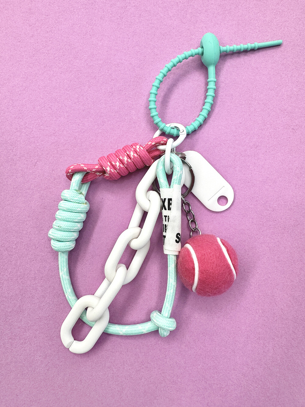 핑크색 테니공이 너무 이뻐요. 상큼한 컬러조합의 키링.