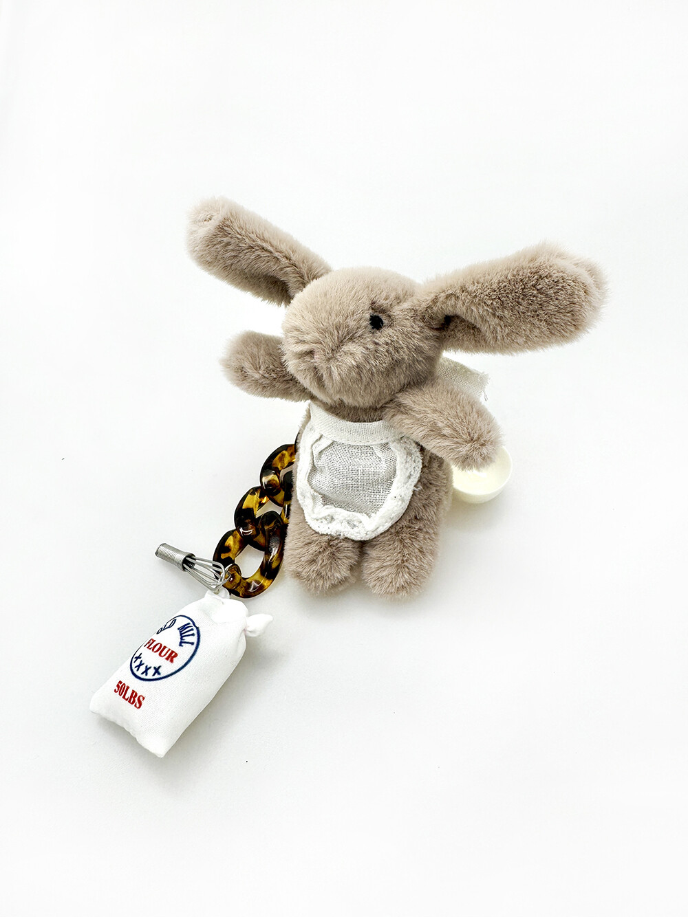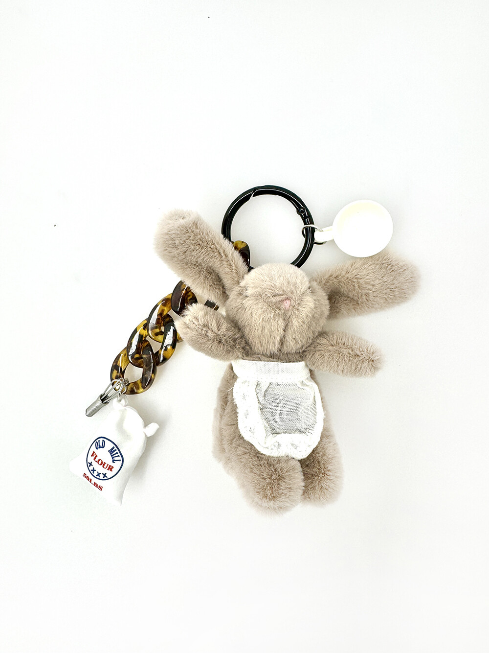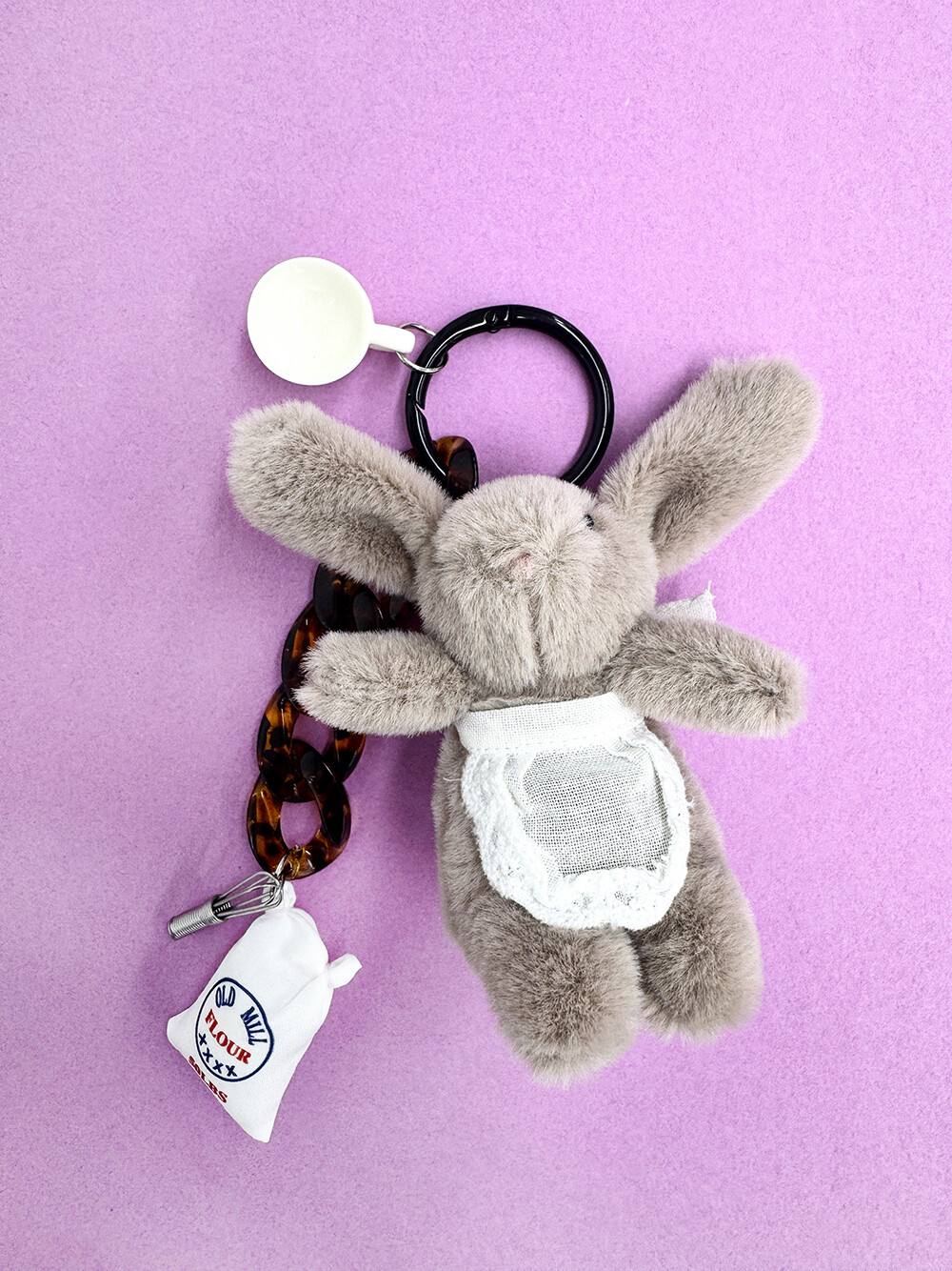 하얀 에이프런을 두른 부들부들한 토끼 키링입니다.