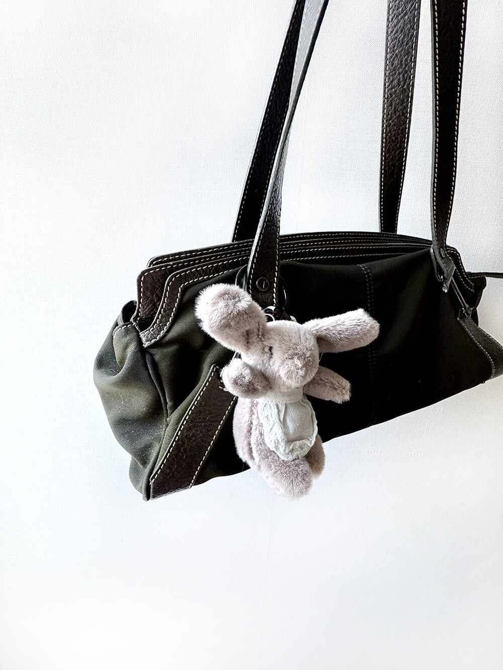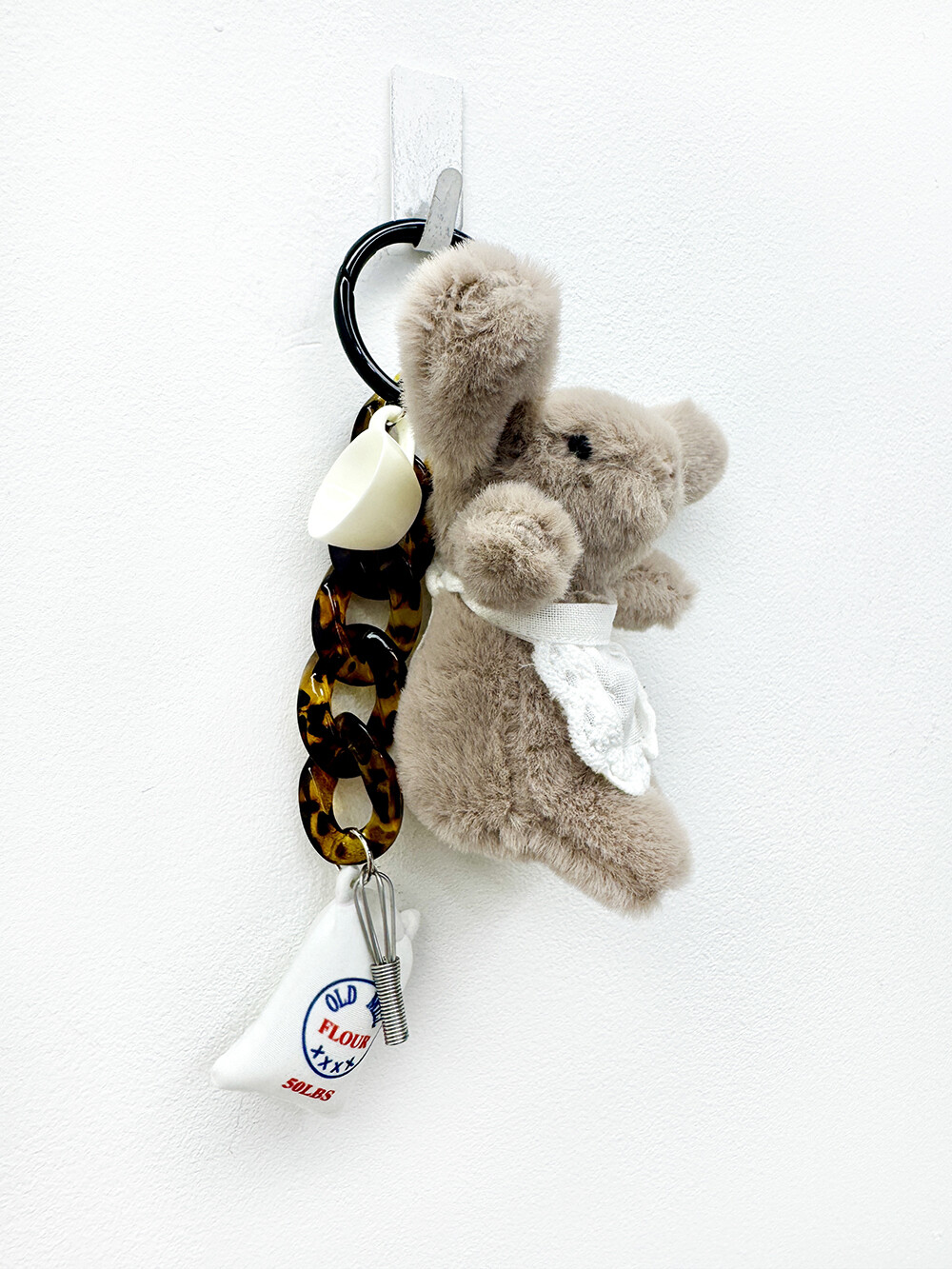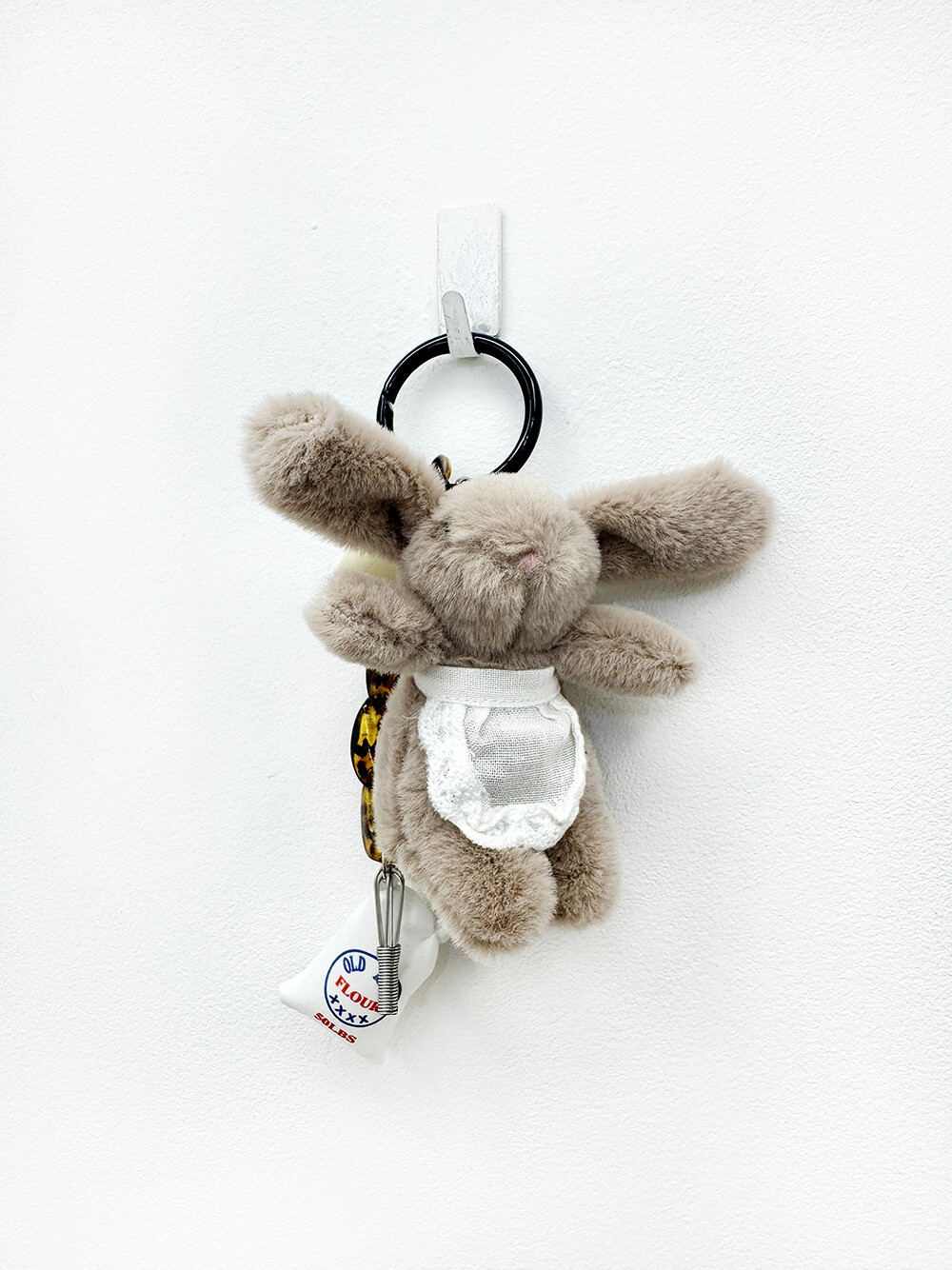 하얀 에이프런을 두른 부들부들한 토끼 키링입니다.