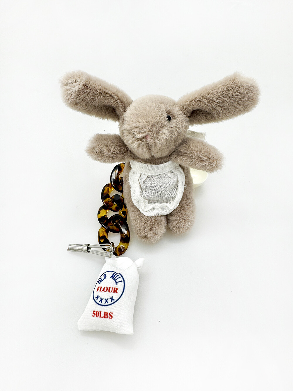 밀가루,설탕,소금 포대 (랜덤출고) 와 믹서스틱,티컵,쟁반(랜덤)을 달아 준 유니크한 토끼 백참입니다.