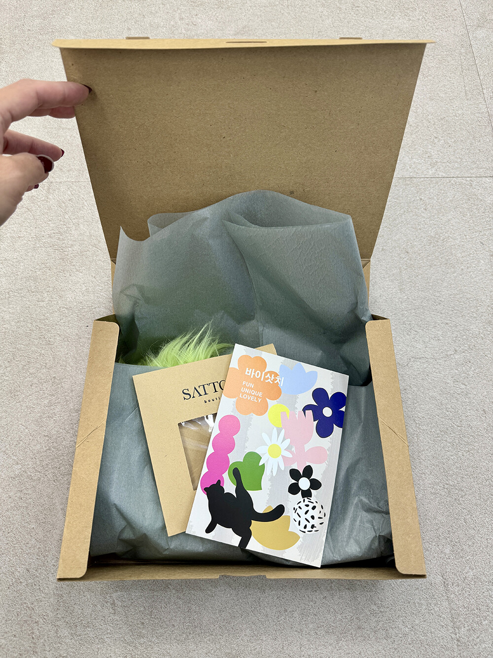 털이 다소 눌려있을 수 있으니 손으로 만져서
