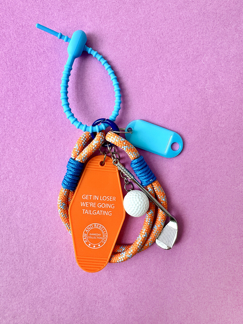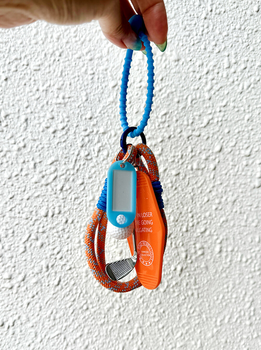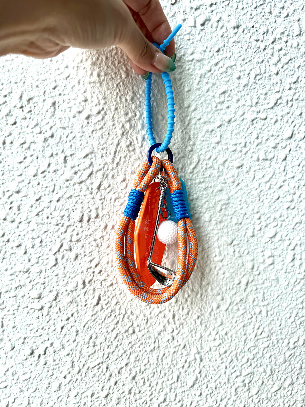 멀티 오렌지 컬러로프에 골프참이 달린 백참 입니다.